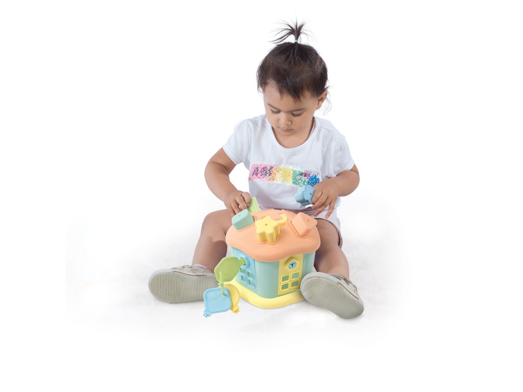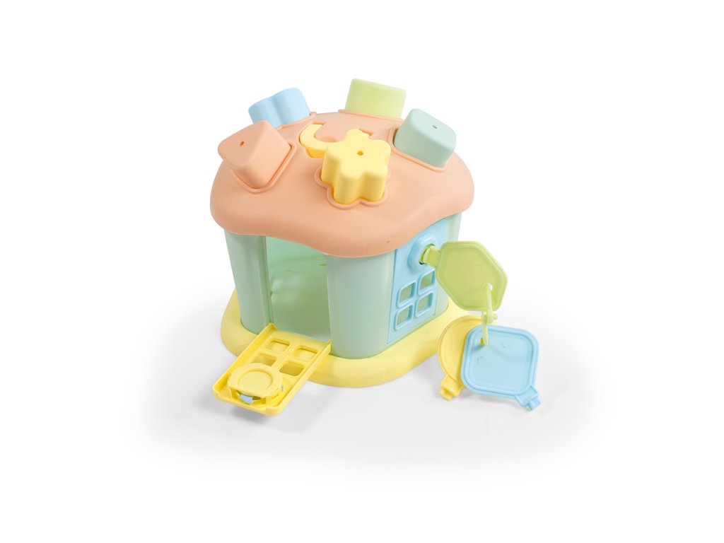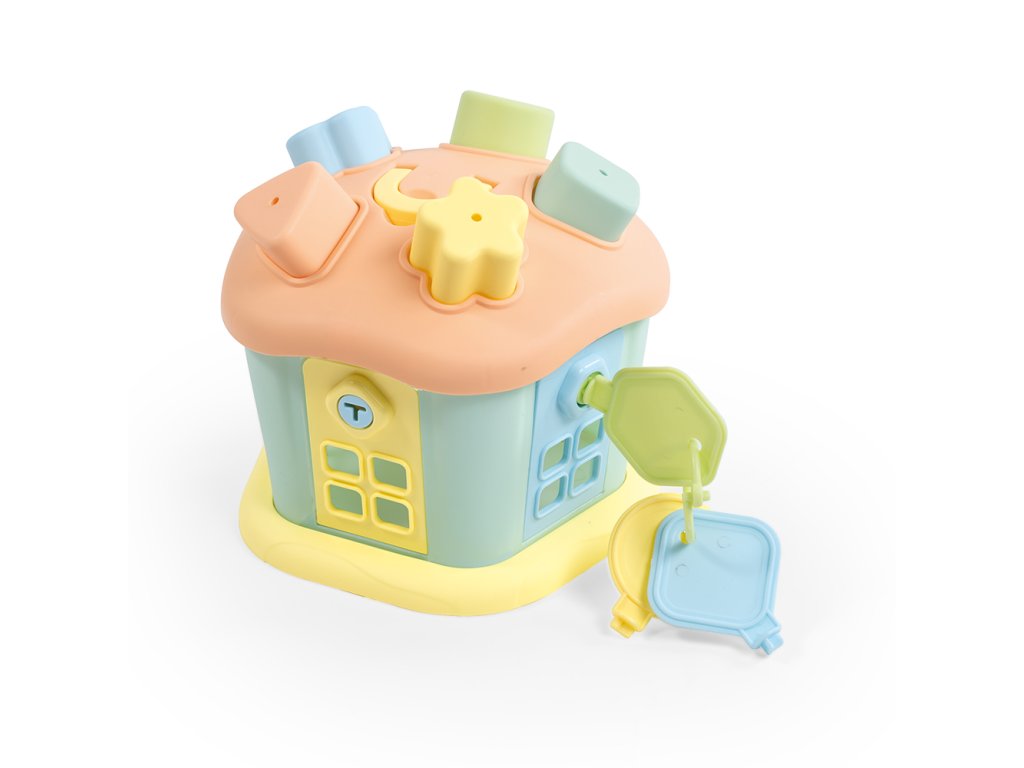 Domeček s prostrkáváním tvarů a zamykatelnými dvířky je vzdělávací hračka, která pomáhá dětem rozeznávat barvy a geometrické tvary. Hračka rozvíjí jemnou motoriku, představivost a logické myšlení. Domeček má na střeše 5 otvorů k prostrkávání různých geometrických tvarů. Navíc je domeček vybaven několika dvířky, které lze zamknout a odemknout pomocí svazku 3 klíčů, který je součástí hračky. Hračka v krásném designu a pastelových barvách, vaše děti zabaví na dlouhé chvíle. Vyrobeno z kvalitního plastu. Vhodné pro děti od 12 měsíců. Rozměry hračky: 16,5 x 19,7 x 20 cm. Rozměry balení: 16,5 x 20 x 20 cm.
