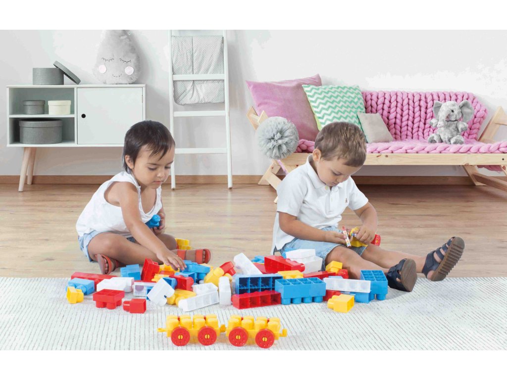 Speciálně tvarované plastové kostky jsou vhodné pro všechny malé stavitele. Jedno balení obsahuje 50 kostek. Stavění u dětí podporuje představivost a rozvíjí jemnou motoriku. Věk: 12m+.