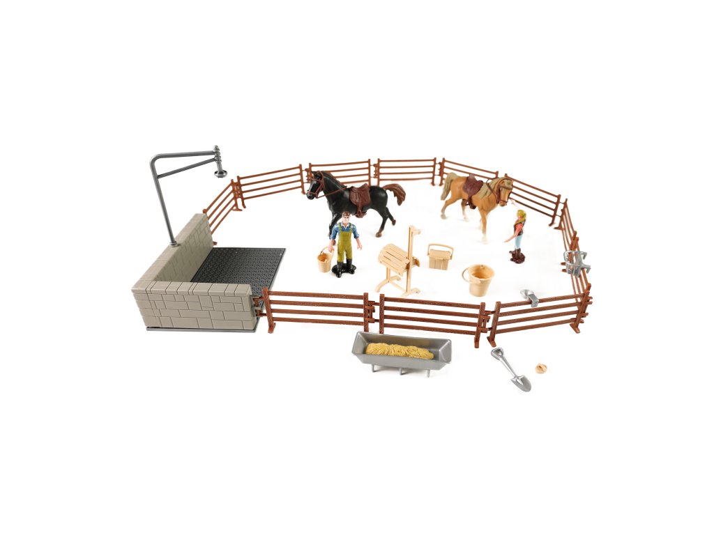 Co takhle si postavit vlastní výběh s ohradou pro koně? S touto sadou máš ideální příležitost, k dispozici dostaneš oplocení, mycí kout pro koně a je jen na tobě, jakou velikost a tvar bude mít tvůj výběh. V balení najdeš i postavičky koně, ošetřovatelů a další doplňky.