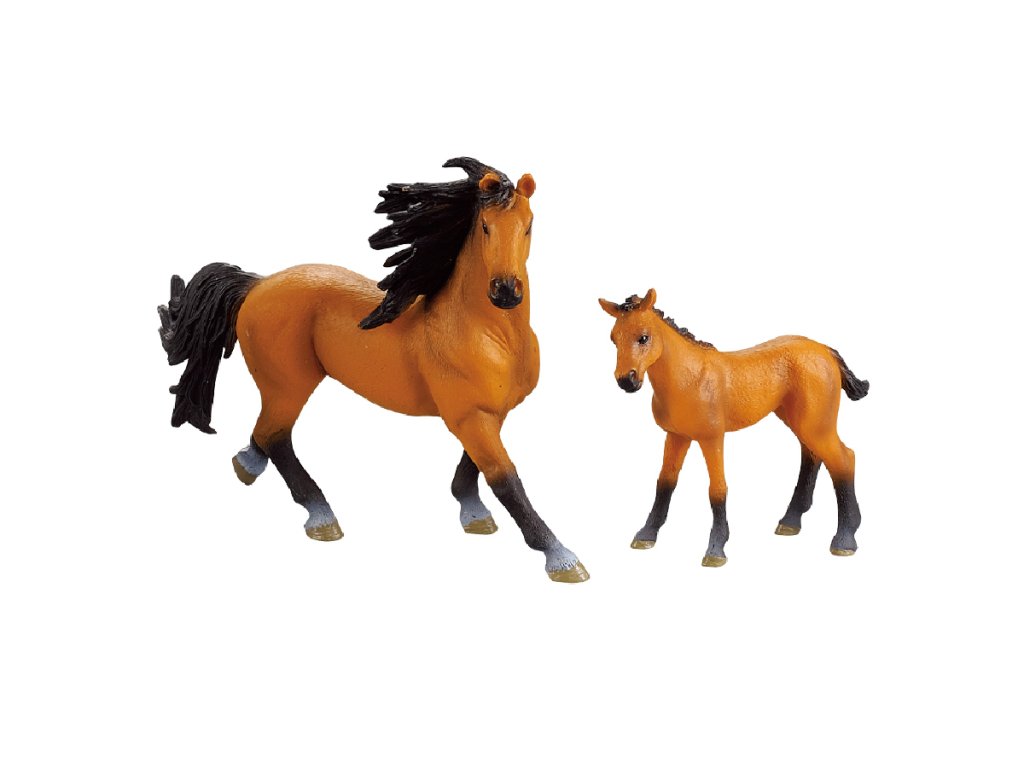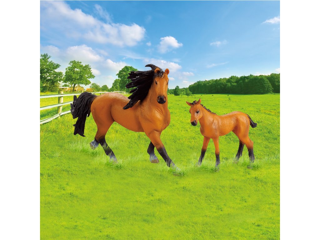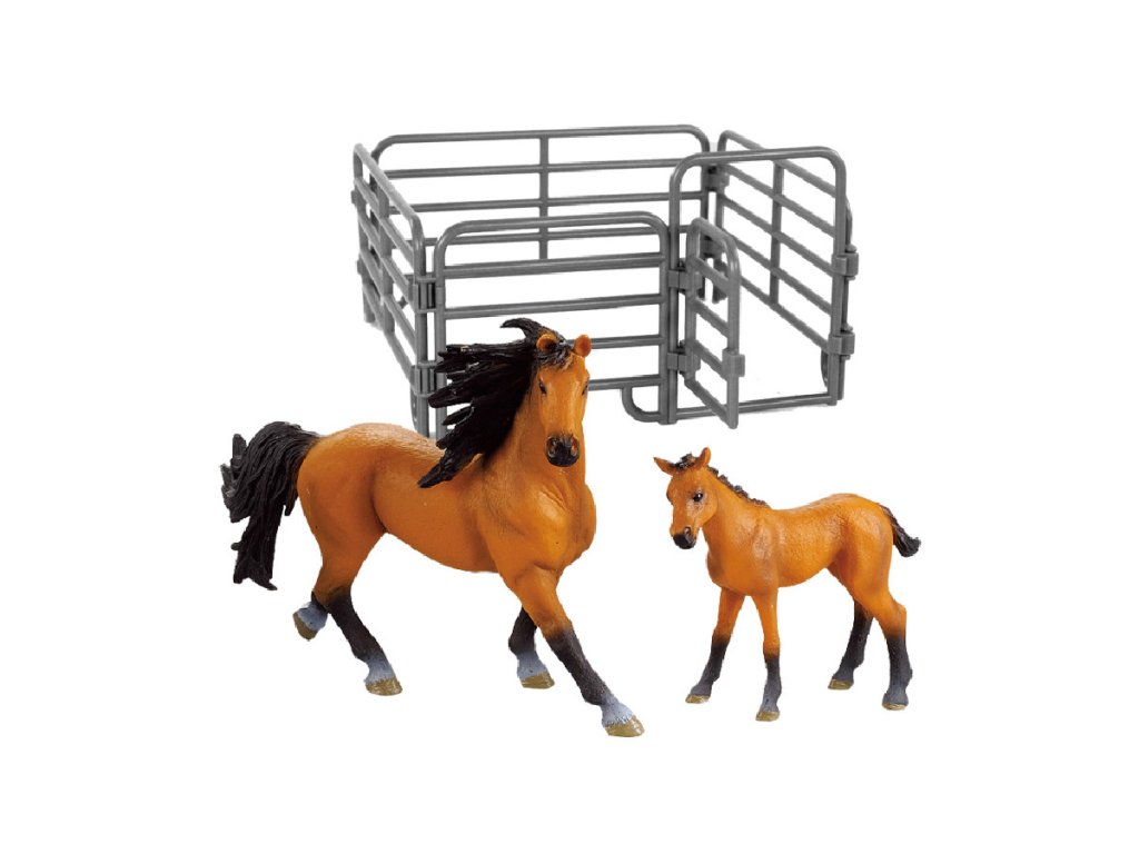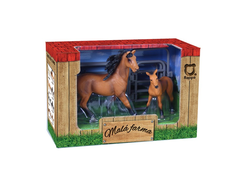 Figurka koně a hříběte v hnědé barvě s tmavou hřívou. Součástí balení také ohrada. Ideální pro milovníky koní. Tato hračka je součástí kolekce Moje malá farma.