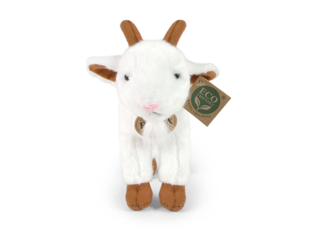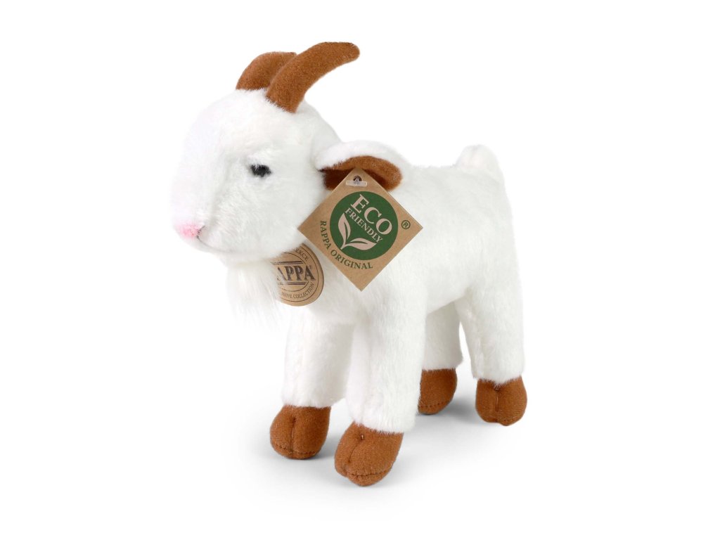 Plyšová koza měří 20 cm a díky těm nejkvalitnějším materiálům se řadí do Exkluzivní kolekce plyšových hraček značky Rappa. Díky ručnímu zpracování každého kusu navíc vypadá jako živá. Proč označení ECO-FRIENDLY? Rappa si je vědoma všech dopadů na životního prostředí, zaměřuje se na udržitelnost a omezení používání plastů na minimum. Proto je výplň hraček vyrobena z recyklovaných materiálů, zejména PET lahví. Ta je však zcela nezávadná a vhodná i pro děti od narození. FUN FACT: Věděli jste, že kozy mají obdélníkové zorničky v očích?