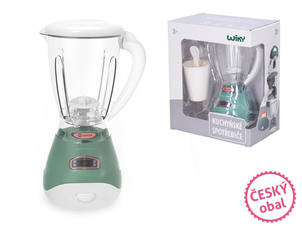 Mixér s efekty. Velikost 8x5x15cm. Baterie 2xAA, nejsou součástí. Vydává světelné a zvukové efekty.