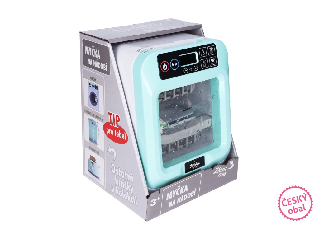 Večeře byla výborná! Ale ten nepořádek v kuchyni! Hromada špinavého nádobí! Nechce se ti vše umývat ručně? Pořiď si myčku se světelnými a zvukovými efekty a vše bude bez práce! Dej nádobí do myčky, zvol si ze 4 programů mytí nebo si nastav potřebný čas a je to! Teď si můžeš dát čaj a odpočinout!