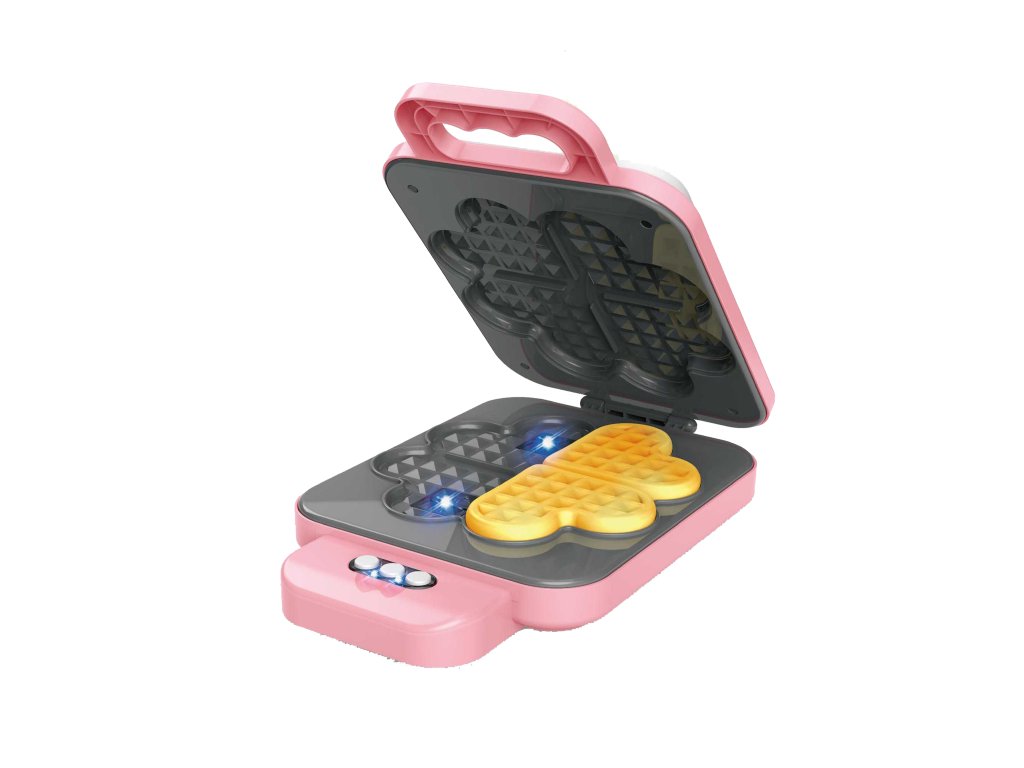 Vaflovač s efekty. Velikost 15x22,5x5,5 cm. Obsahuje vaflovač a 4ks vaflí. Vafle během pečení změní barvu. Světelné i zvukové efekty. Baterie nejsou součástí.