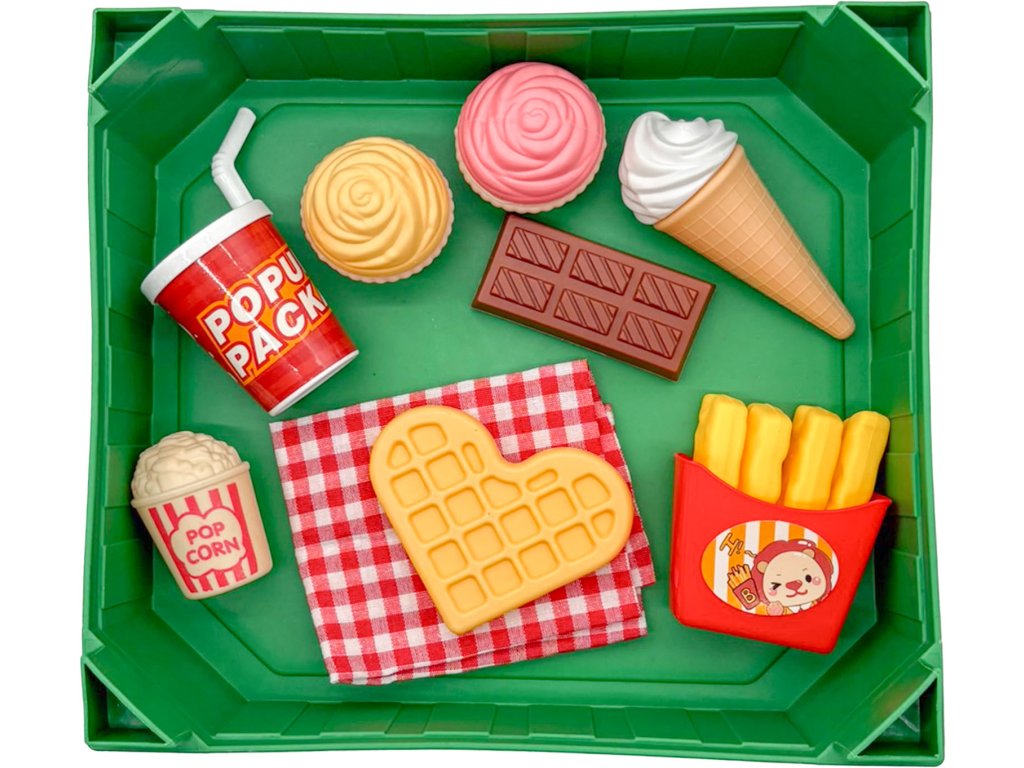 Zmrzlina, vafle, hranolky… a další pochutiny, které můžeš připravit pro své přátele. Udělej piknik pro své přátele. Potraviny jsou uložené v bedýnce, která jde skládat na sebe. Balení obsahuje 15 ks.