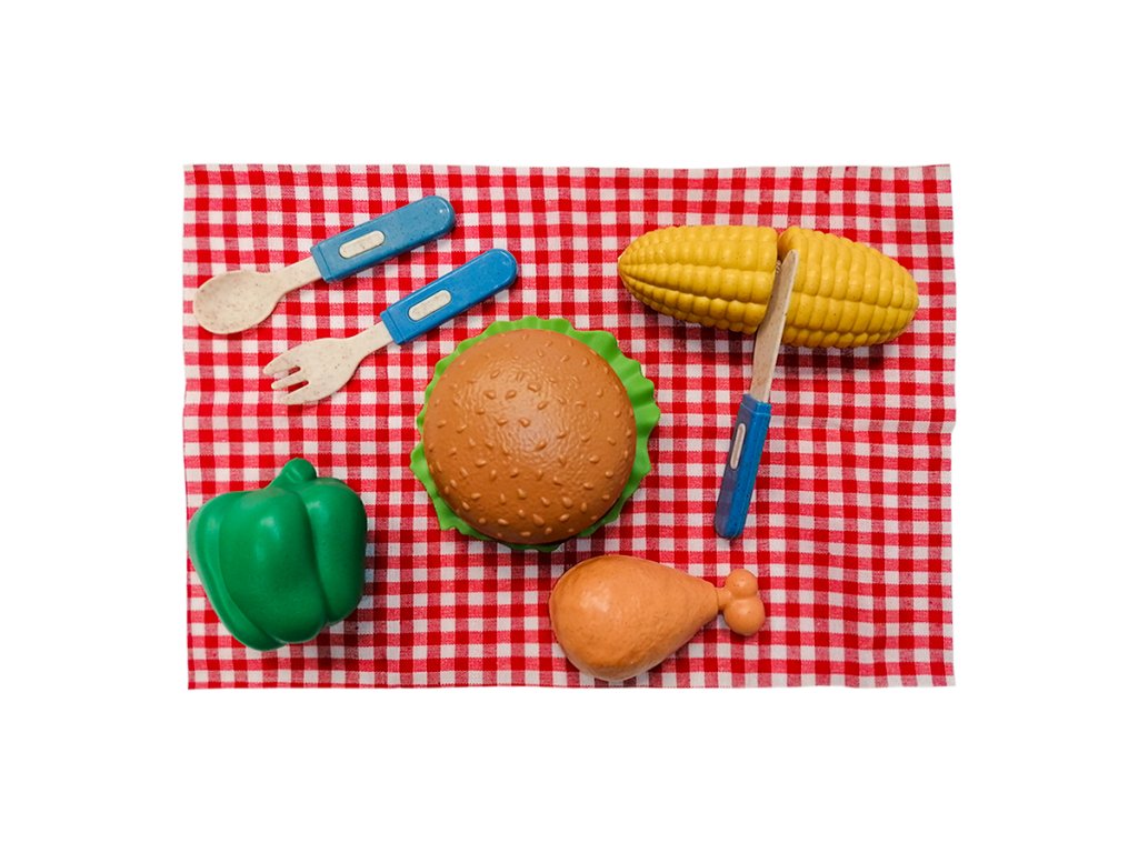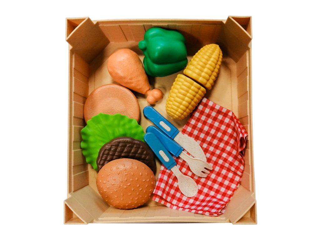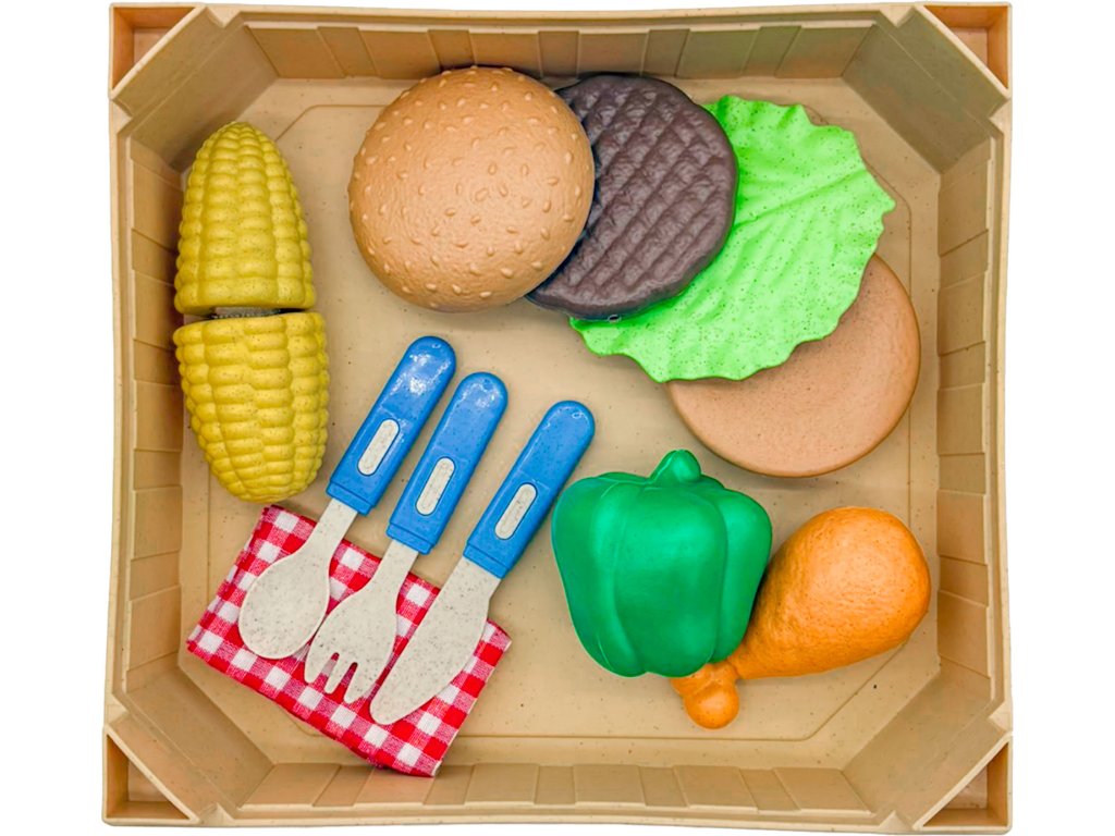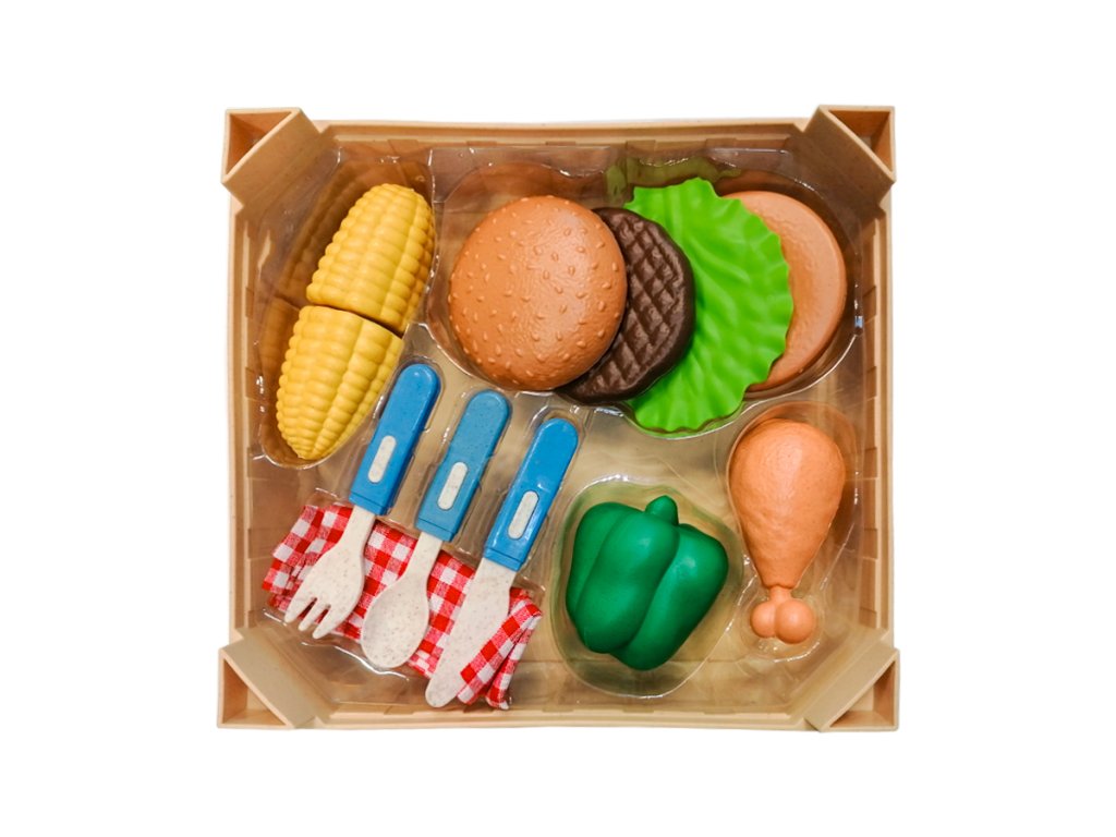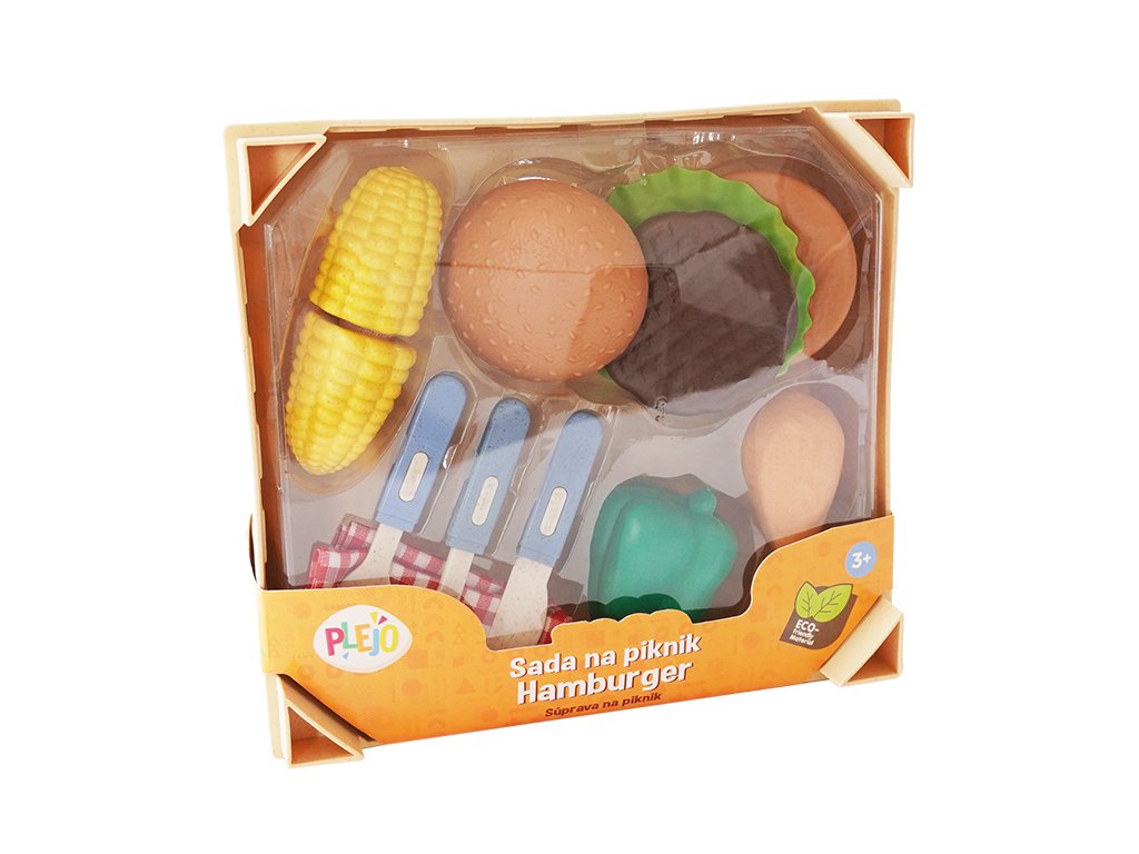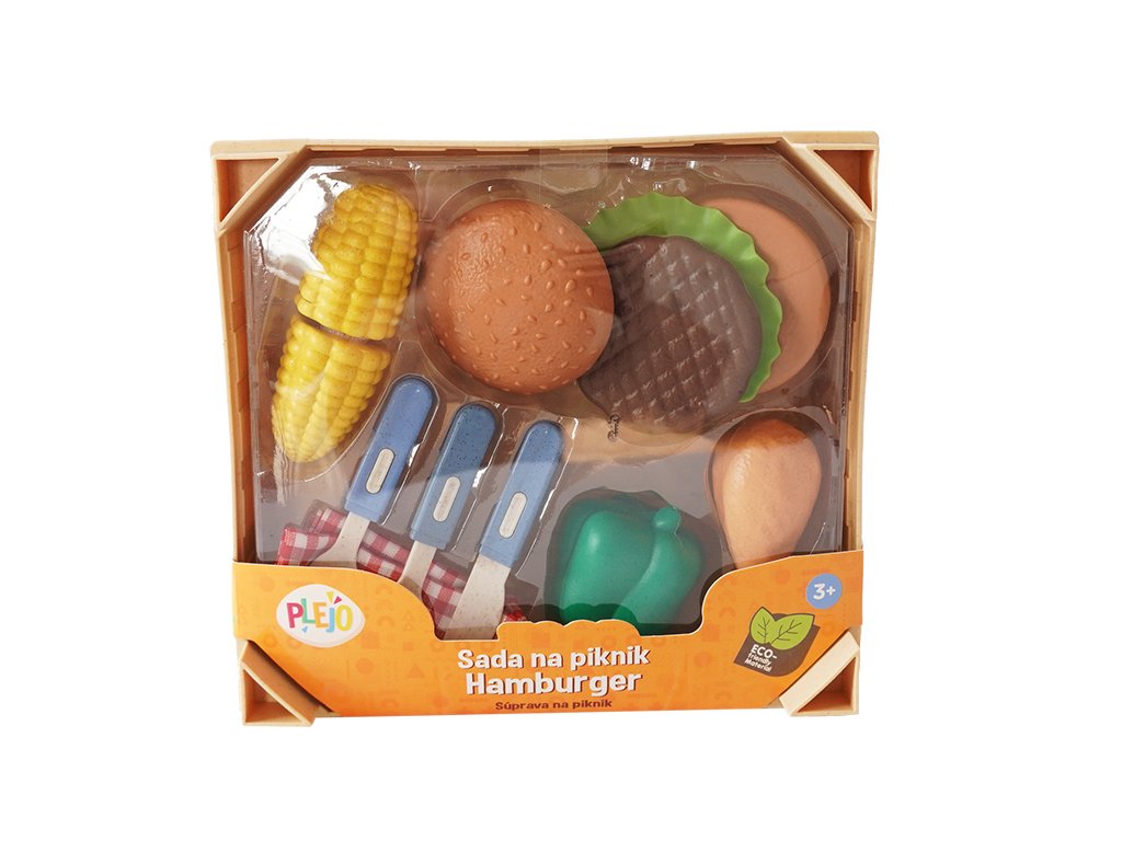 Sada potravin na hamburger. Uvař si svůj burger a udělej pro své přátele piknik. Potraviny jsou uloženy v bedýnce, které se dá skládat na sebe. Balení obsahuje 13 ks.