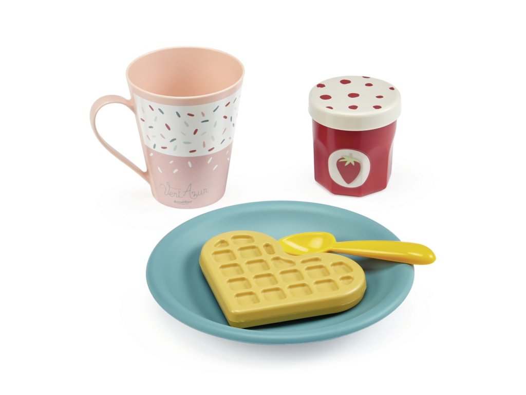 Sada 3 v 1 na přípravu snídaně obsahuje 3 spotřebiče - kávovar, vaflovač a tyčový mixér. Součástí sady jsou doplňky: 4 vafle, miska, 2 vejce, 2 kapsle do kávovaru, 2 šálky, láhev mléka, plechovka šlehačky a sklenice džemu. Rozměry výrobku: 22,5 x 17 x 14 cm.