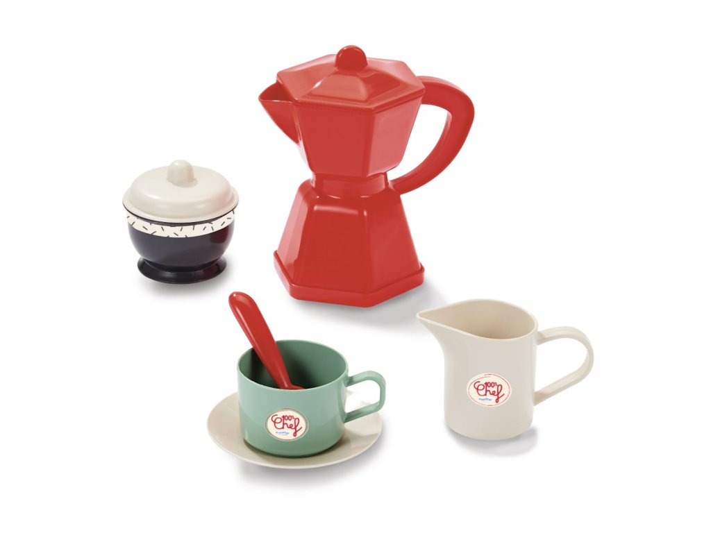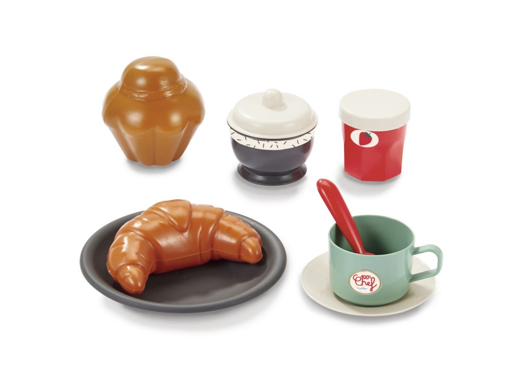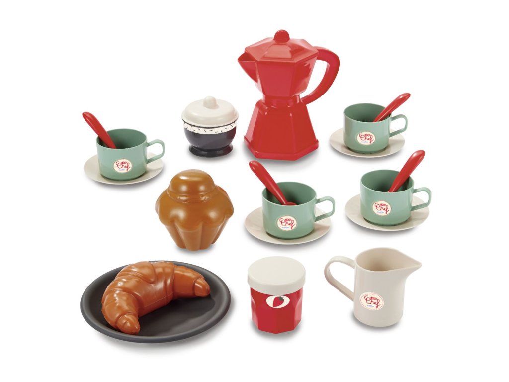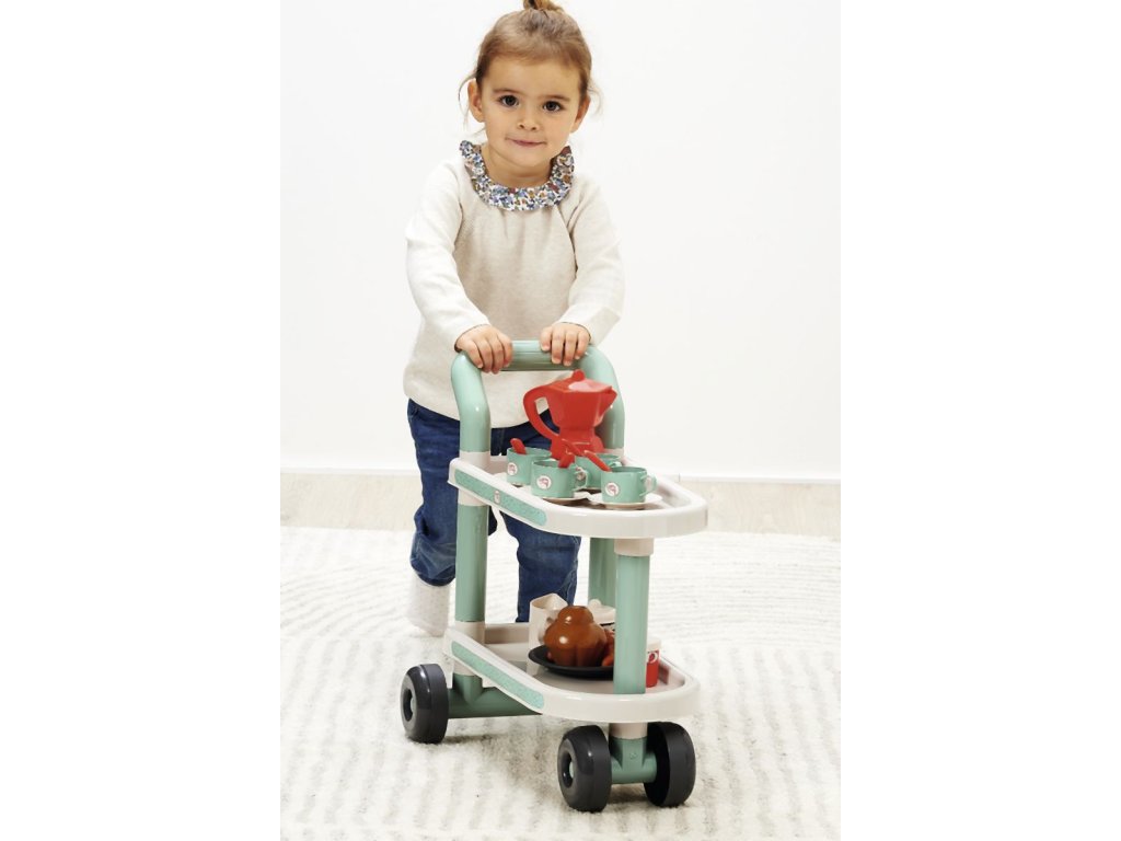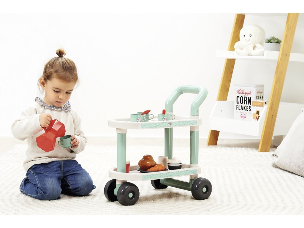 Snídaňový vozík na kolečkách s kávou i zákuskem, celkem 22 ks příslušenství. Rozměry vozíku (DxŠxV): 44 x 50 x 45,5 cm.