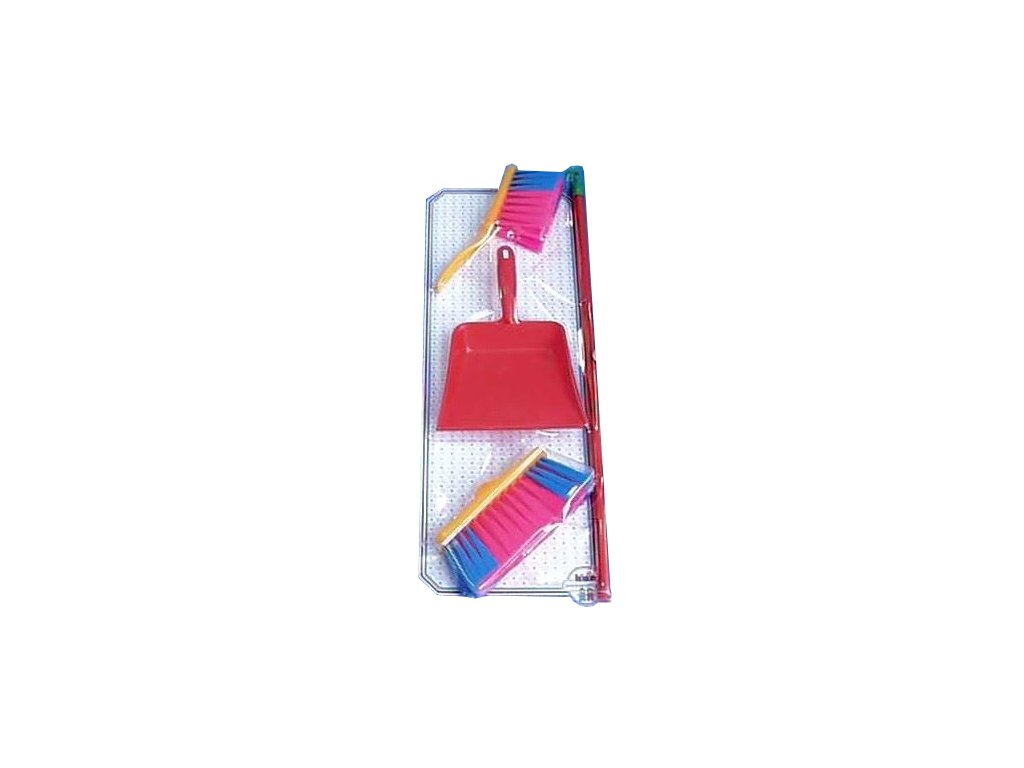 Sada koštěte, malého košťátka a lopatky, baleno na blistru. Vhodné pro děti od 3 let.
