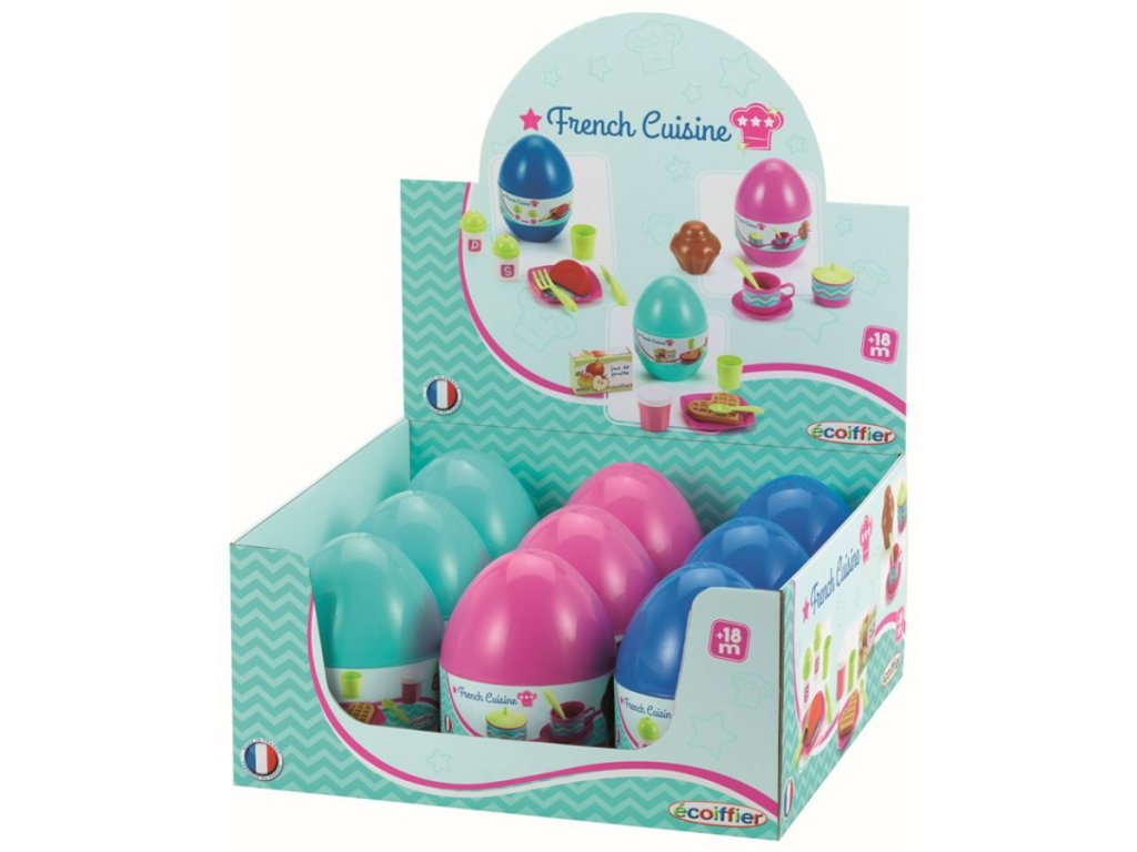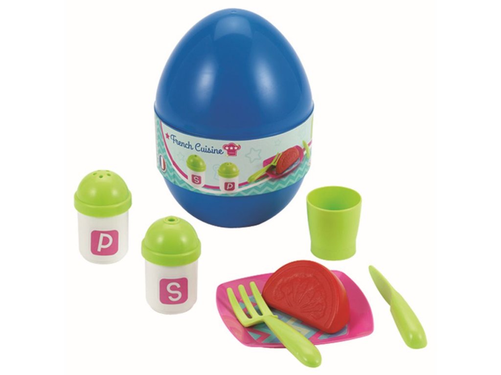 Vajíčko s překvapením v podobě jídelního setu, 3 druhy. Velikost vajíčka 11 x 15 x 11 cm. Prodej pouze po displejích!!!!