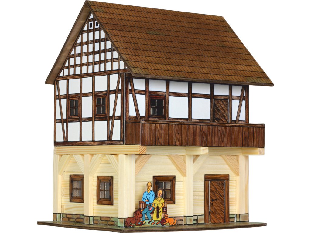Dřevěná slepovací stasvebnice ve které je vše potřebné k sestavení včetně návodu. Ke slepení se používá lepidlo na dřevo a papír. Není součástí balení.
