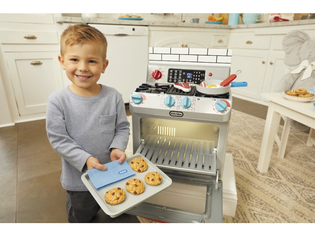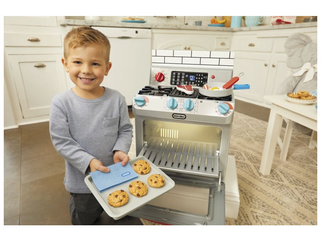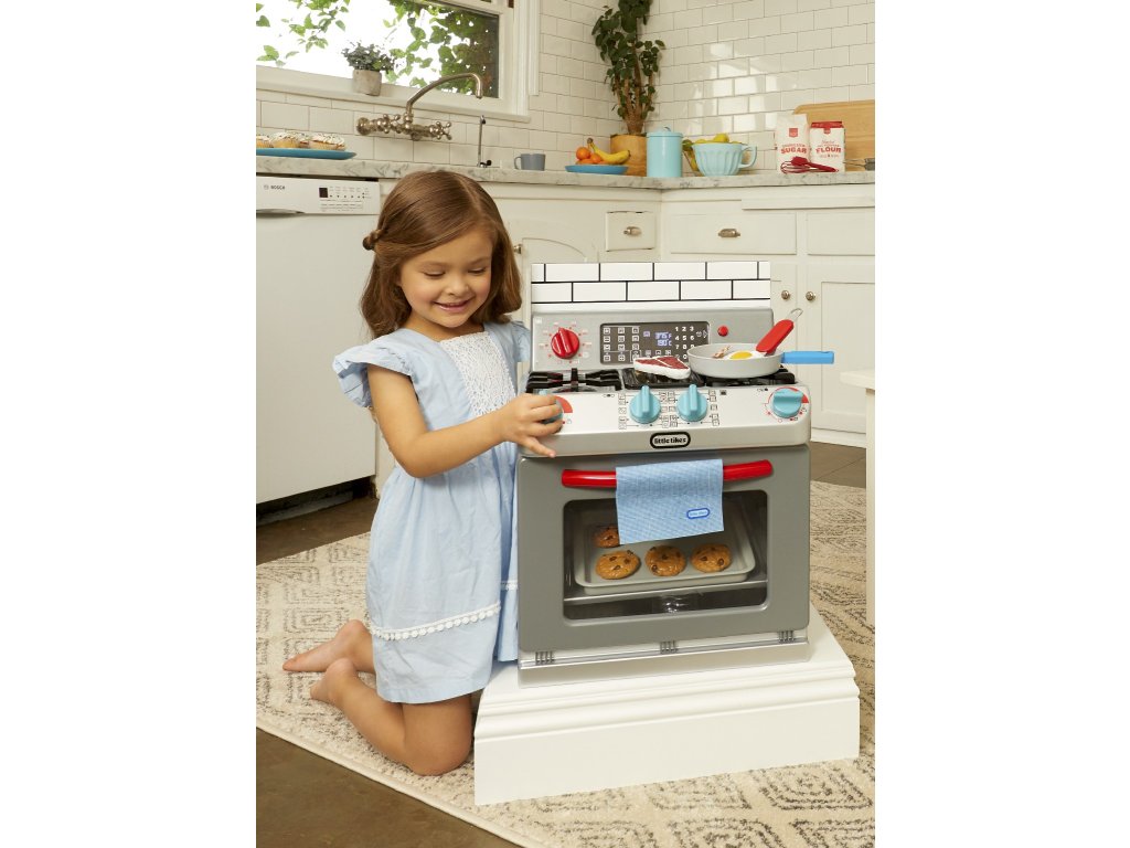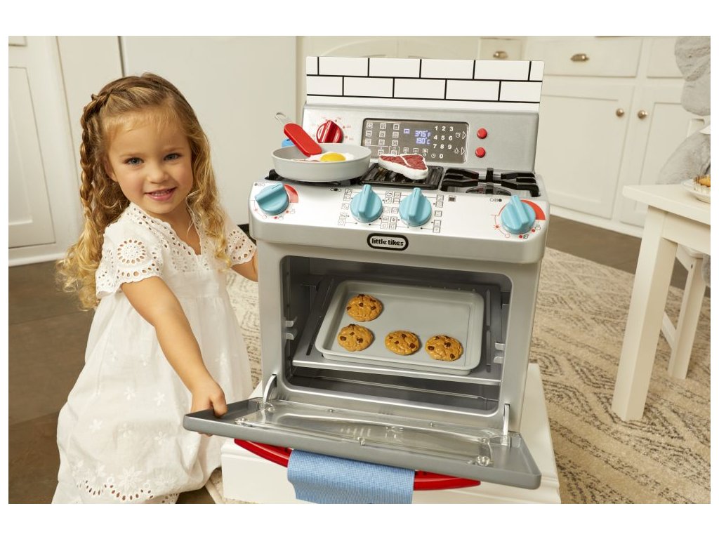 ** K výrobku dárek v hodnotě cca 300 Kč zdarma ** Little Tikes Moje první trouba je interaktivní hračka, která je navržena tak realisticky, že vypadá jako skutečná trouba. Děti mohou předstírat, že vaří v kuchyni stejně jako jejich rodiče.•Funkční dvířka trouby a odnímatelná police v troubě•Otočením knoflíků a stisknutím tlačítek aktivujete světelné a zvukové funkce•Po otočení konflíků se rozsvítí trouba•Světlo na pracovní deskce•Vydává zvuky jako trouba•Obsahuje různé pánve, nádobí a jídlo (steaky, vejce, sušenky z čokolády atd.)