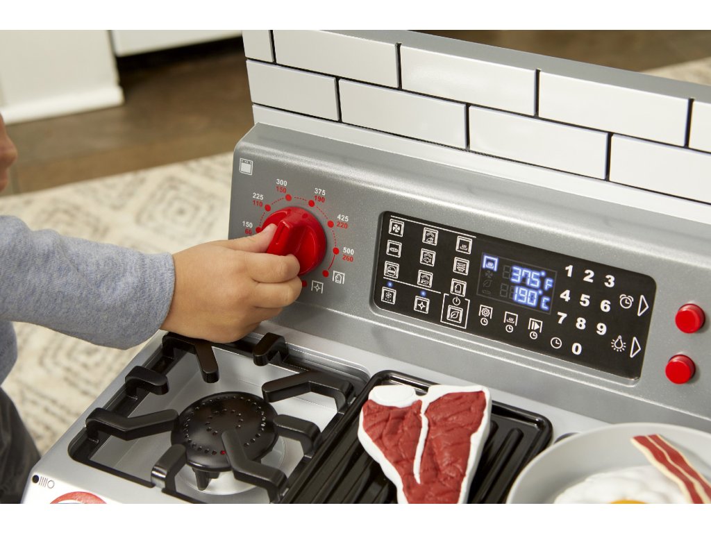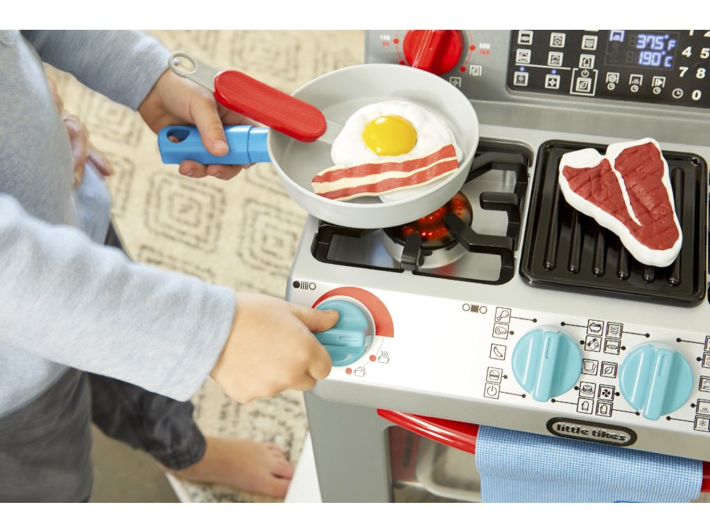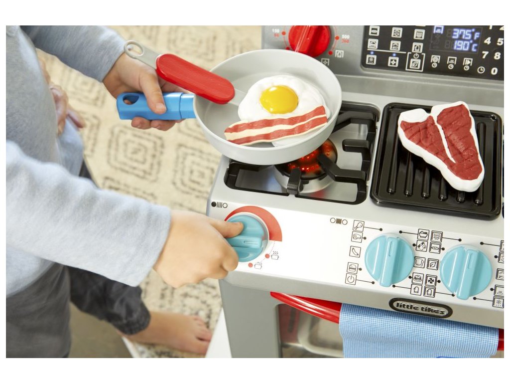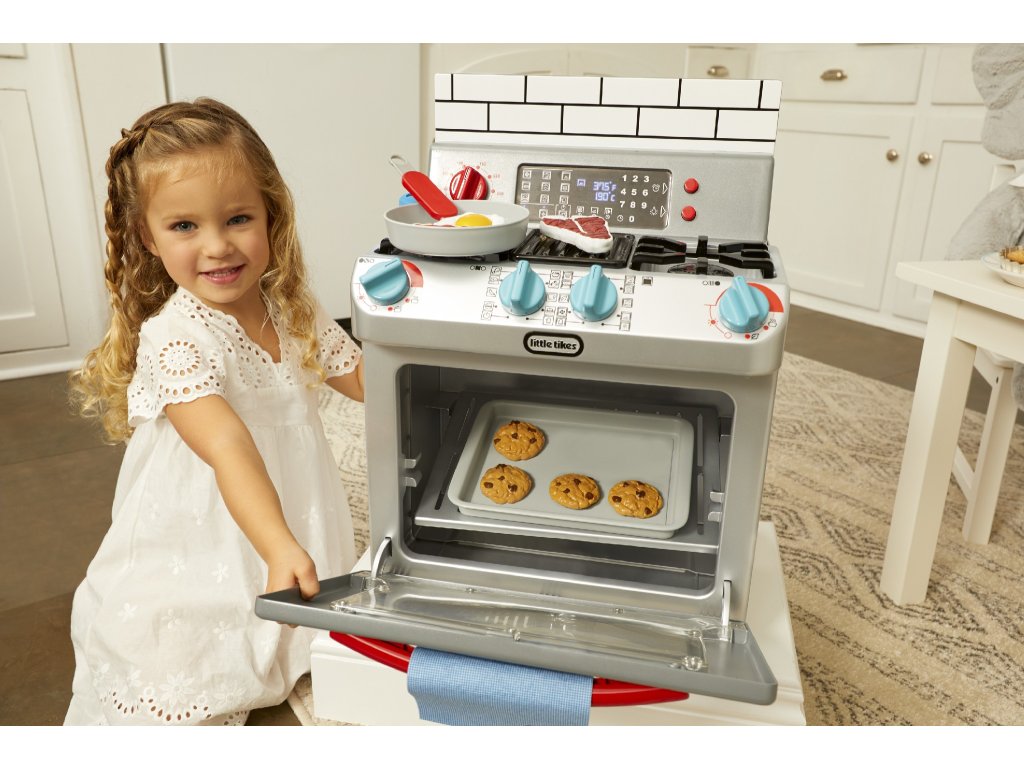 ** K výrobku dárek v hodnotě cca 300 Kč zdarma ** Little Tikes Moje první trouba je interaktivní hračka, která je navržena tak realisticky, že vypadá jako skutečná trouba. Děti mohou předstírat, že vaří v kuchyni stejně jako jejich rodiče.•Funkční dvířka trouby a odnímatelná police v troubě•Otočením knoflíků a stisknutím tlačítek aktivujete světelné a zvukové funkce•Po otočení konflíků se rozsvítí trouba•Světlo na pracovní deskce•Vydává zvuky jako trouba•Obsahuje různé pánve, nádobí a jídlo (steaky, vejce, sušenky z čokolády atd.)