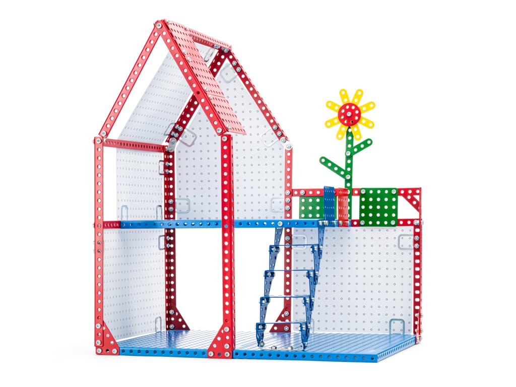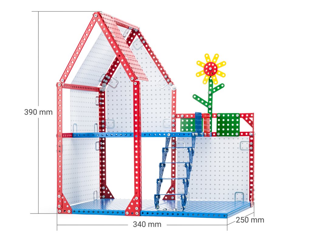 Ponořte se do světa kreativity a zábavy se stavebnicí kovového domečku pro panenky od společnosti Merkur. Tato jedinečná sada je ideálním nástrojem pro rozvoj technických dovedností a představivosti dětí. Díky kovovým dílkům si malí stavitelé mohou postavit vlastní domeček pro panenky a přizpůsobit si ho podle svých představ. Stavebnice obsahuje kvalitní kovové díly, které se snadno spojují šroubky, což podporuje rozvoj jemné motoriky, logického myšlení a soustředění. Děti se naučí sestavovat jednotlivé díly tak, aby vytvořily realistický model domečku, který pak mohou využít při hře se svými panenkami. Hotový domeček má dvě patra, včetně schodiště vedoucího do druhého poschodí. Součástí je 8 dílků, které představují stěny pokojů a děti si je mohou pomalovat podle vlastní fantazie. Domeček je kompatibilní se sadou 48018, která obsahuje nábytek do domečku pro panenky. Sada obsahuje: 345 dílů. Úroveň Merkur obtížnosti: 3. Ekologicky baleno. Baleno v krabičce. Rozměry složeného domečku: 39 x 34 x 25 cm. Rozměry balení: 23 x 33,3 x 5,7 cm. Věk: 5+