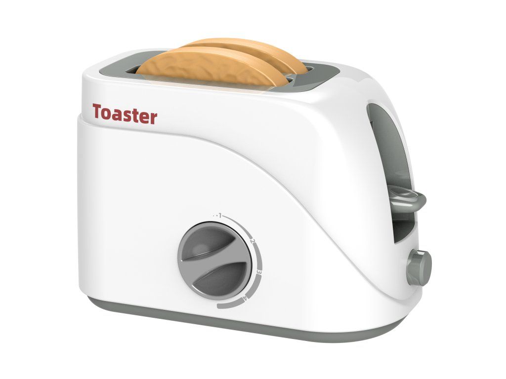 Toustovač. Rozměry 17x9,2x16 cm. Páčkou vpravo se tousty zasunou dovnitř. Nastavením kolečka vepředu začne běžet časovač. Po vypršení času tousty vyskočí.