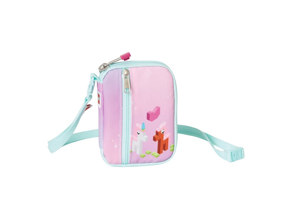 Peněženka s vnitřní a vnější kapsou na zip vhodná na mince či jiné drobné předmety. Prostor až pro 3 karty, vnější průhledná přihrádka ideální např. na uložení cestovního dokladu. Díky pásku na pověšení na krk s bezpečnostní pojistkou může být snadno přenášena a může se stát ideálním společníkem nejen dětí na výletech. Díky sjednocenému typu používaných přezek může být kapsička připnuta ke všem LEGO školním aktovkám a poutko použito například jako poutko na klíče.