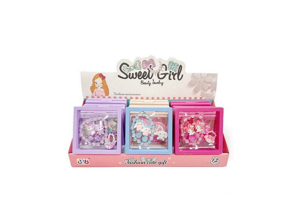 Korálkové šperky s postavičkou set. Rozměry krabičky 9x2x9 cm. Display box 12 ks.