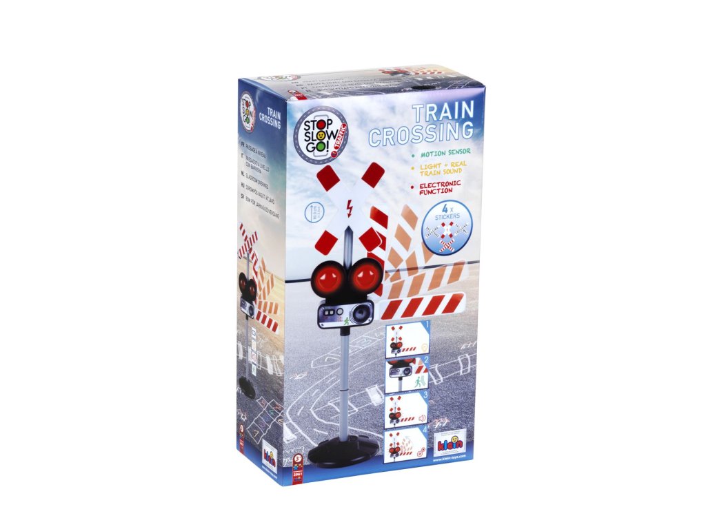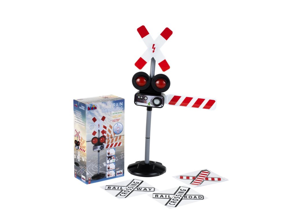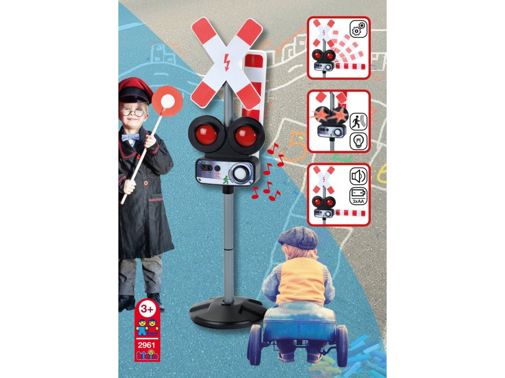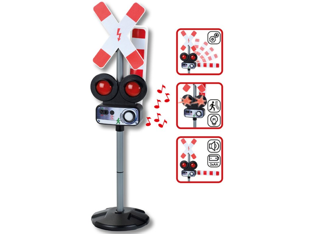 Železniční závory s funkcí světla a zvuku. Fáze semaforu jsou volitelné automaticky nebo ručně. Výška 80 cm, šířka 50 cm. Baterie nejsou součástí balení. Vhodné od 3 let.