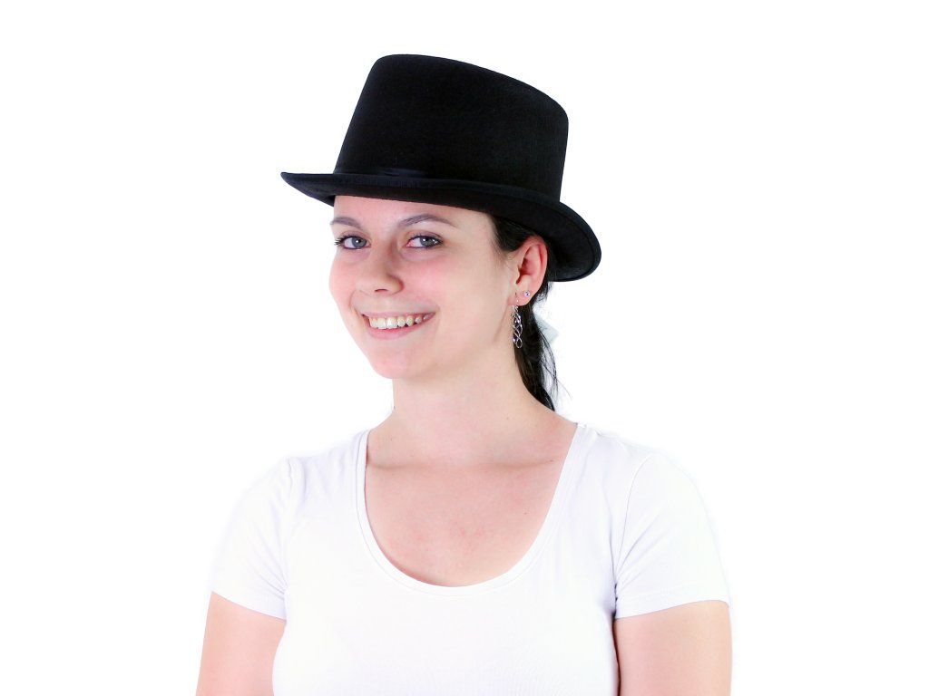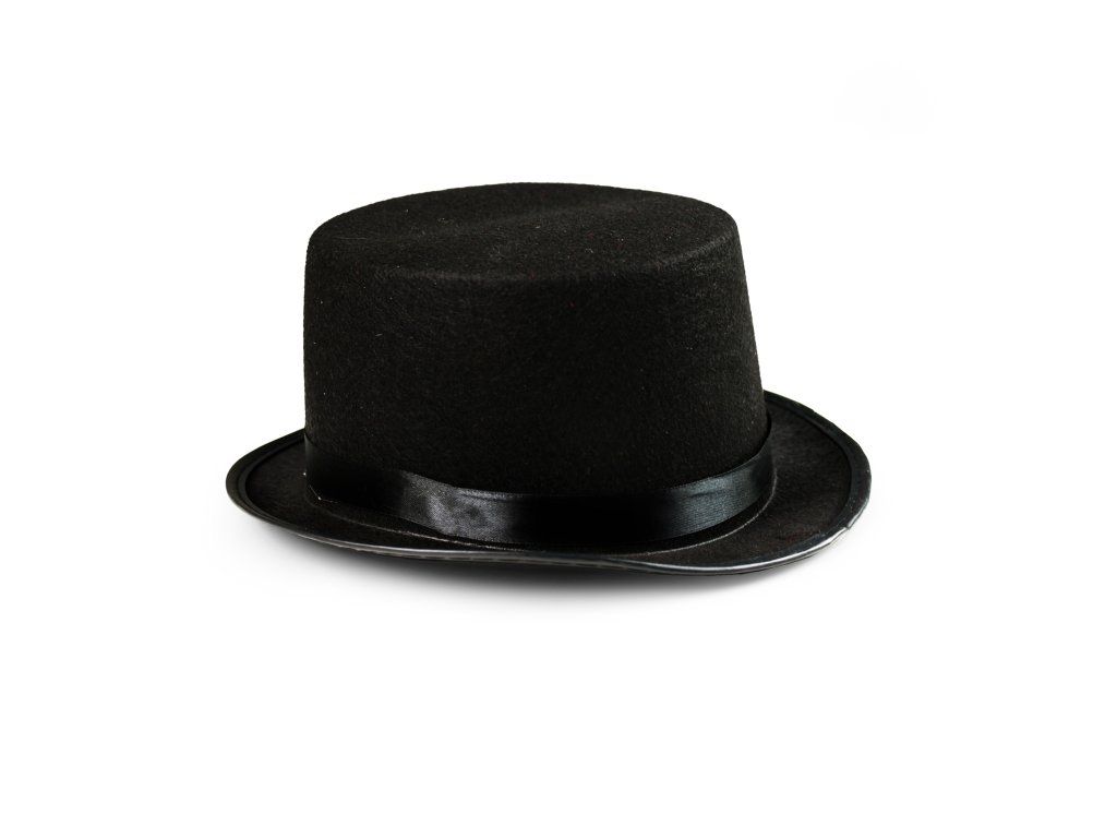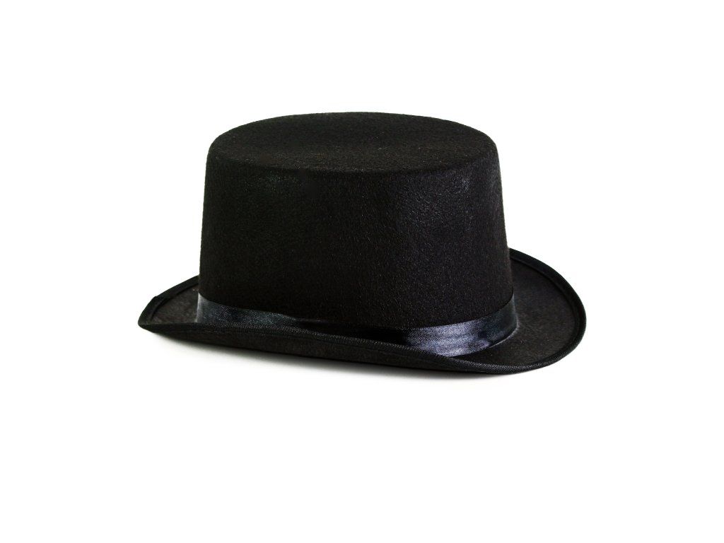 Stylový cylindr pro dospělé je vysoký 12 cm. Tento černý elegantní klobouk je zdoben černou saténovou stuhou.