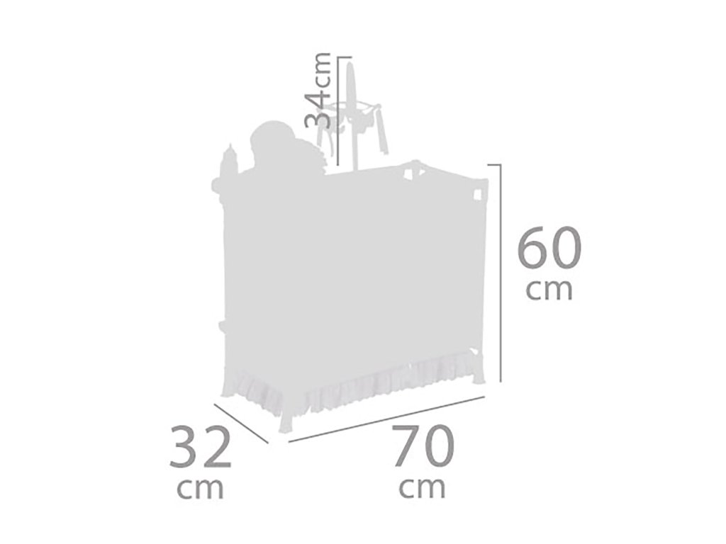 DeCuevas 53079 Skládací postýlka pro panenky s 5 funkčními doplňky KOALA 2024 patří do stejnojmenné kolekce, která je novinkou roku 2024 a nabízí nejen kočárky, ale i jiné doplňky pro malé slečny a jejich panenky. Tato dívčí kolekce KOALA je doslova něžnost sama. Spící medvídek s květinou za ouškem je velmi roztomilý. Tento motiv doprovází každý výrobek z kolekce. V provedení se střídá bílá s drobným květinovým potiskem s lososově růžovým jednobarevným materiálem.Doplňky a vybavení:• Kolotoč s lístečky (výška 34 cm)• Přebalovací pultík (17 x 27 cm)• Jídelní židlička a plastový set s lahví, miskou a příborem• Lůžková část (42 x 28 cm) se síťovaným okénkem • Velká šatna na zip s tyčkou a 3 ramínky na oblečení pro panenky (40 x 27 x 30 cm)• Dvě úložné poličky • Rozměry postýlky: 70 x 32 x 60 cm (d x š x v) • Panenka, oblečení a věci v poličkách nejsou součástí baleníDoplňující informace:• Nádherný španělský design• Precizní zpracování• Skládací model• Velmi snadná manipulace během samotné hry• Materiál: kov, plast, textil• Baleno v krabici v barvách kolekce• Rozměry balení: 61 x 14 x 32,5 cm (d x š x v)• Váha balení: 2,6 kg• U vybraných modelů je na obalech QR kód s video návodem na sestavení • Doporučený věk od 3 letDeCuevas 53079 Skládací postýlka pro panenky s 5 funkčními doplňky KOALA 2024, která je novinkou roku 2024, je u holčiček oblíbená díky svému rozmanitému příslušenství a úložnému prostoru, který ocení i pořádkumilovné maminky. Kolekce nabízí nejen kočárky, ale i jin