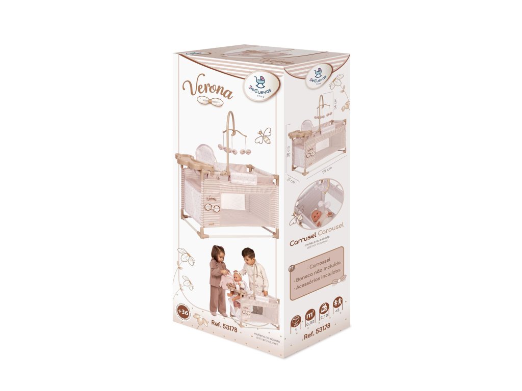 DeCuevas 53178 Moje první postýlka pro panenky s hracím centrem Verona 2025 patří do stejnojmenné, velmi úspěšné kolekce z roku 2024, která nabízí nejen zmíněné kočárky, ale i jiné doplňky pro malé slečny a jejich panenky. Tato decentní kolekce se celá nese v jemných pastelových přírodních barvách i vzorech. Kombinace světle béžové a bílé s roztomilými puntíky nebo proužky doplňuje světle hnědé úzké lemování, které zdůrazňuje dokonalost tvarů a krásně ladí s hnědými madly kočárků. Přírodní styl kolekce podtrhují aplikace mašliček zobrazující okvětní lístky a drobné výšivky včeliček.Doplňky a vybavení:• Kolotoč s mašličkami zobrazující okvětní lístky (výška 34 cm)• Přebalovací pultík (17 x 27 cm)• Jídelní židlička a plastový set s lahví, miskou a příborem• Lůžková část (42 x 28 cm) se síťovaným okénkem • Malá šatna na zip (27 x 10 x 20 cm) s tyčí a 3 ramínky na oblečení pro panenky • Rozměry postýlky: 59 x 31 x 38 cm (d x š x v) • Panenka a oblečení není součástí baleníDoplňující informace:• Nádherný španělský design• Precizní zpracování• Velmi snadná manipulace během samotné hry• Materiál: kov, plast, textil• Baleno v krabici v barvách kolekce• Rozměry balení: 55 x 14,3 x 23,5 cm (d x š x v)• Váha balení: 2 kg• U vybraných modelů je na obalech QR kód s videonávodem na sestavení • Doporučený věk od 3 letDeCuevas 53178 Moje první postýlka pro panenky s hracím centrem Verona 2025 ze stejnojmenné, velmi úspěšné kolekce z roku 2024 je u holčiček oblíbená díky svému rozmanitému pří