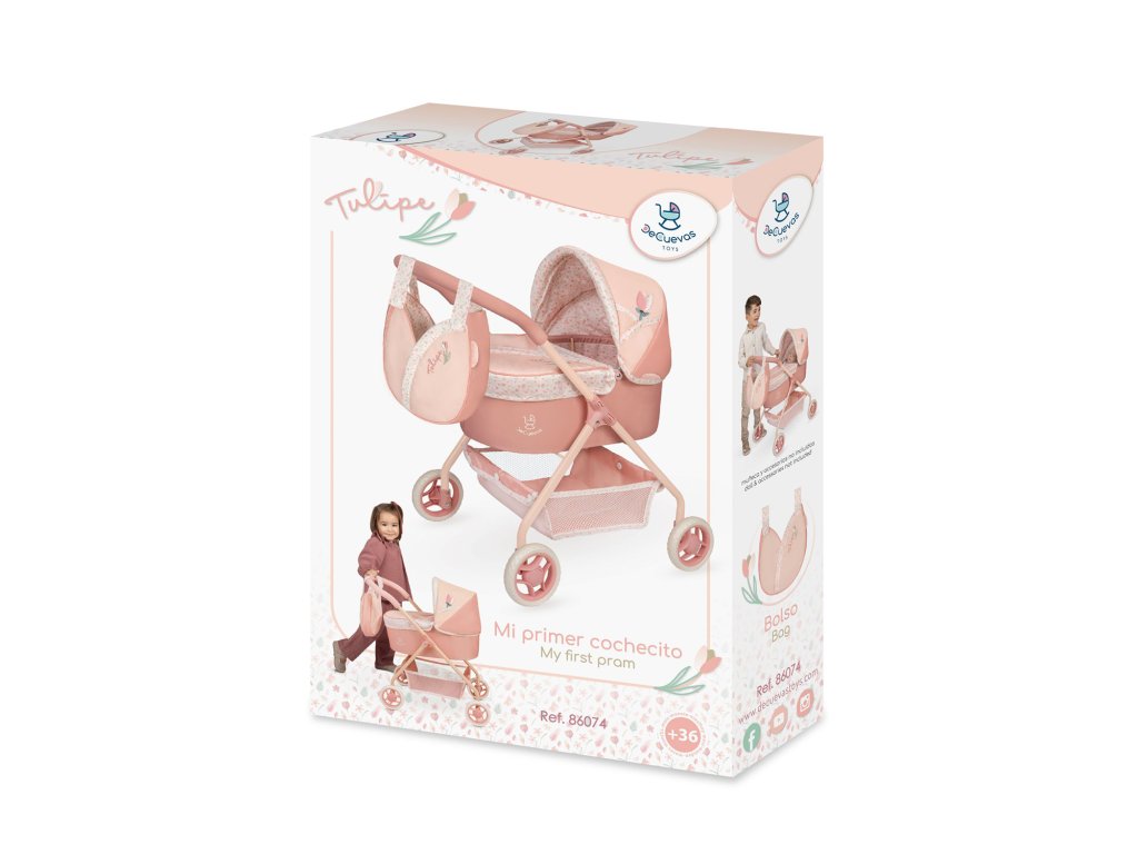 DeCuevas 86074 Můj první kočárek pro panenky s taškou Tulipe 2025 - 56 cm