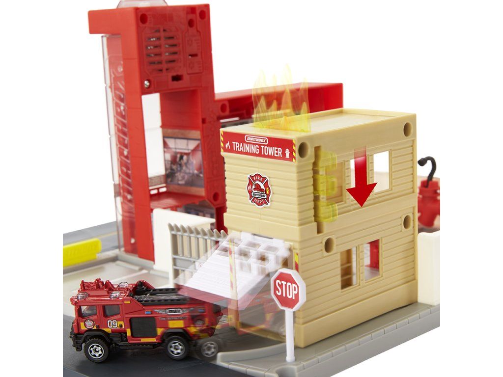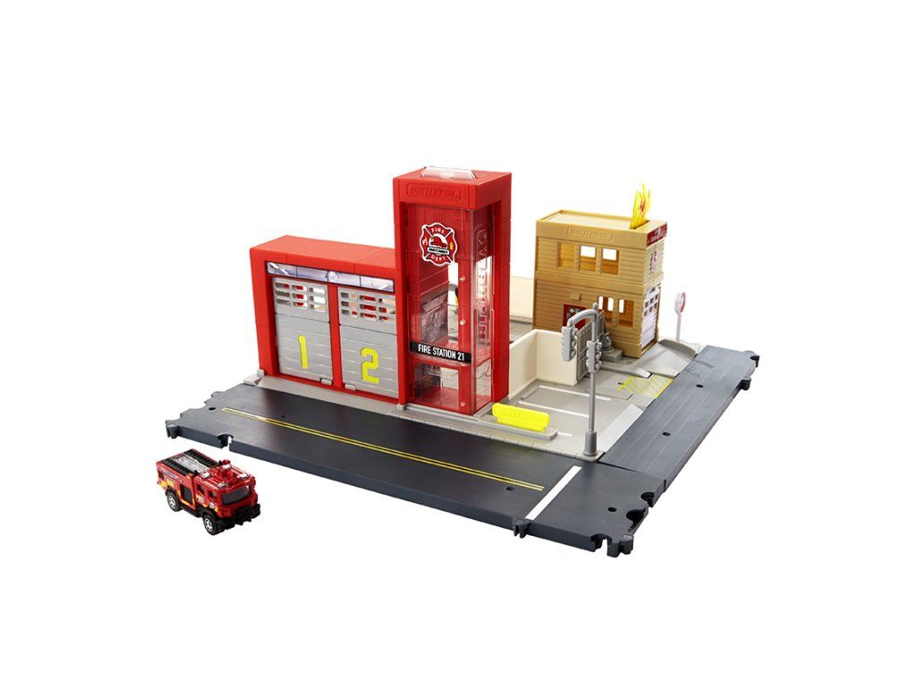 Dobrodružné herní sety Matchbox™ Action Drivers™ nabízí realistická dobrodružství řízená dětmi. Děti ovládají hru prostřednictvím několika herních oblastí tím, že otvírají brány a rozsvěcují světlo posunutím dodávaného vozidla Matchbox™ v měřítku 1:64. Konektory v každém rohu umožňují, aby se tyto herní sety vzájemně propojily i se sety Hot Wheels™ City (každý se prodává samostatně.) Každý set je dodáván s jedním autem Matchbox™ v měřítku 1:64. Barvy a vzhled výrobku se mohou lišit.