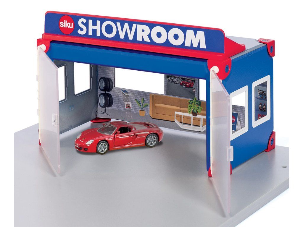 Autosalon s barevnou zadní stěnou nabízí místo až třem vozům na parkování. Vytvoř nový scénář hry na každý den pro nová i použitá auta! Široká, prosklená vrata umožňují snadný příjezd a odjezd. Zaparkované Porsche Carrera GT vypadá na otočném podiu autosalonu fantasticky. Standardní hrací deska SIKU umožňuje jednoduché zapojení sady se SIKUWORLD. Vozidla pak mohou jednoduše přejíždět po celém SIKU světě až na požadované místo. Auto je součástí balení. Rozměr hrací plochy: 270 x 350 mm. Rozměr balení: 27,6 x 27,6 x 4,5 cm. Věk: 3+