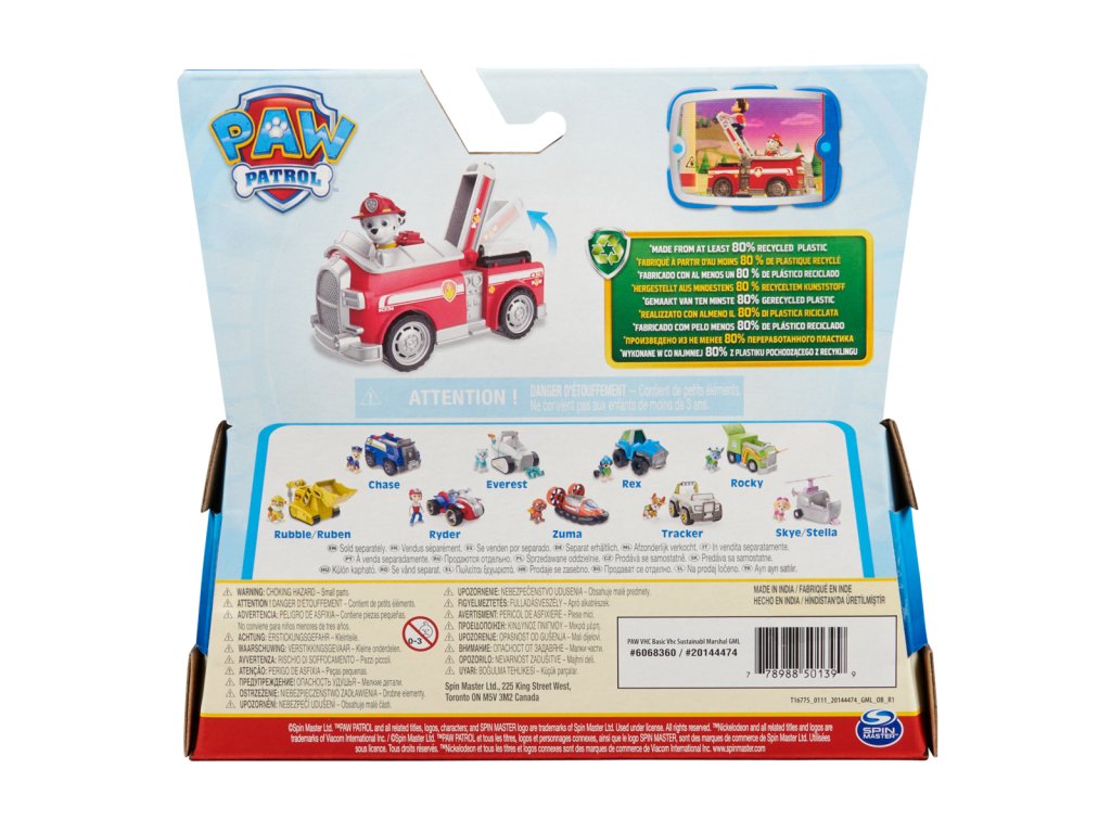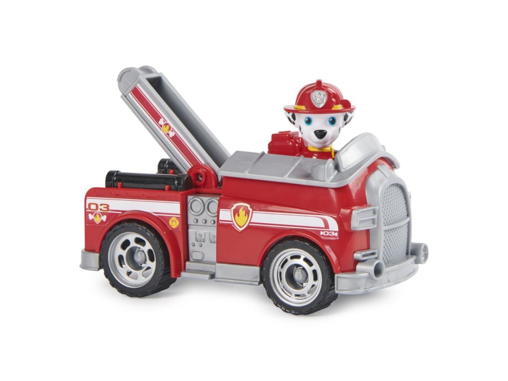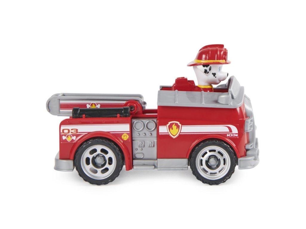 Tlapková patrola vyráží do akce ve svých záchranných vozidlech! Přidejte se k Marshallovi na akčních misích s jeho hasičským vozem. Když dojde k potížím, umístěte Marshalla (včetně figurky) na sedadlo řidiče a vyrazte na pomoc s funkčními koly a pohyblivým žebříkem. S autentickými detaily a realistickými prvky. Marshall a jeho vozidlo jsou ekologicky vyrobené a jsou minimálně z 80 % z recyklovaného plastu. Spojte se s ostatními figurkami Tlapkové patroly a jejich záchrannými vozidly (všechna vozidla se prodávají zvlášť) a pomozte zachránit den v Adventure Bay! Užijte si nekonečné Tlapkózní dobrodružství se svým oblíbeným štěněcím hrdinou v jejich charakteristickém vozidle. Rozměr balení: 20,64x19,38x9,53 cm. Věk 3+