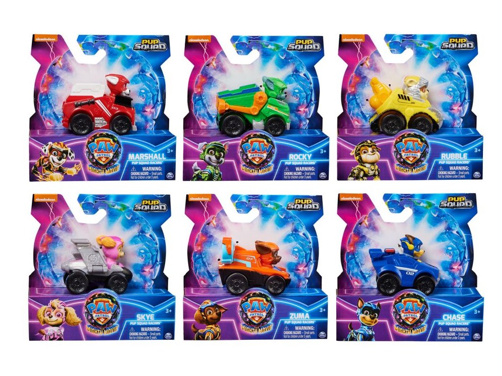Rychle vyrazte na záchrannou akci se závodníky z Tlapkové patroly Pup Squad Racers! Každé závodní autíčko Pup Squad měří 6,5 centimetru na délku a 5 centimetrů na výšku, takže se skvěle vejde do dlaně nebo do kapsy, představuje tak ideální hračku, kterou si děti mohou vzít kamkoli s sebou! Každý pejsek z Tlapkové patroly je oblečený v autentické uniformě z filmu Tlapková patrola: ve velkofilmu s ušima vlajícíma dozadu, takže vypadají, jako by se řítili plnou rychlostí, úplně jako na velkém plátně (každý se prodává zvlášť)! S hračkami ze světa Tlapkové patroly může dítě při hraní rozvíjet svou představivost a motorické dovednosti a zároveň prožívat své oblíbené scény z filmu! Pro ještě zábavnější a napínavější mise inspirované seriálem Tlapková patrola sbírejte všechny hračky z filmů o Tlapkové patrole, jako je například úžasná velitelská letadlová loď, a všechny hračky ze speciální edice Tlapkové patroly pro holky a kluky, jako jsou figurky a hrací sady Mighty Pups, Aqua Pups a Big Truck Pups (každá se prodává samostatně), a užijte si nekonečná dobrodružství s oblíbenými psími hrdiny z filmu Tlapková patrola: ve velkofilmu, se závodníky Pup Squad Racers!