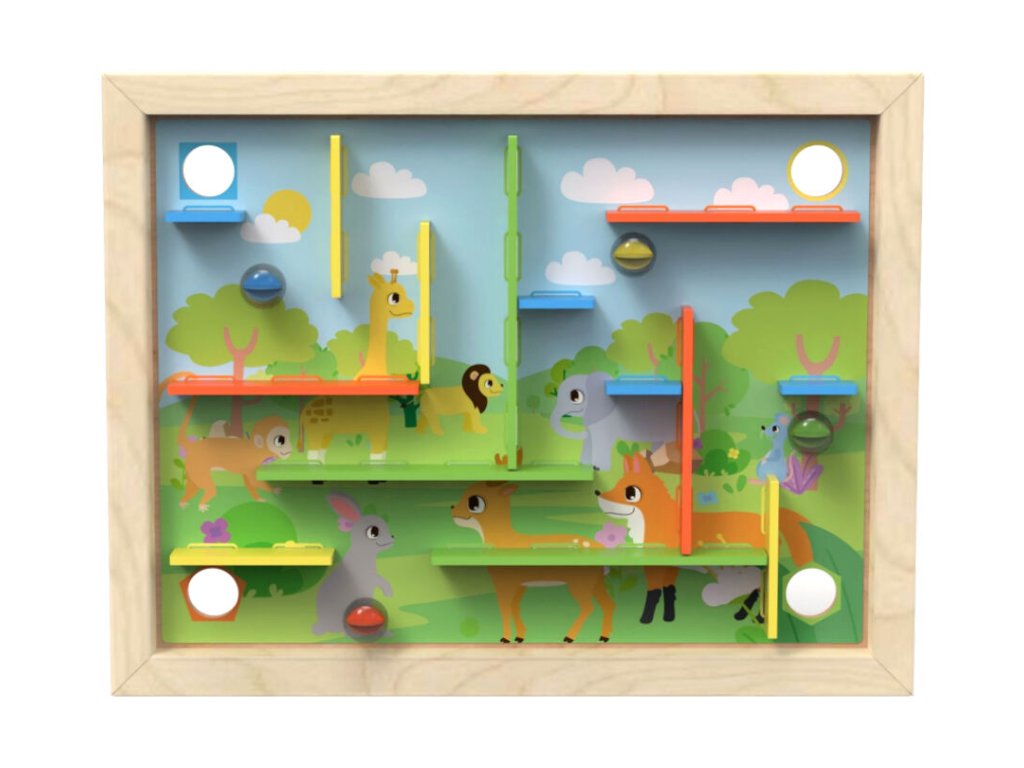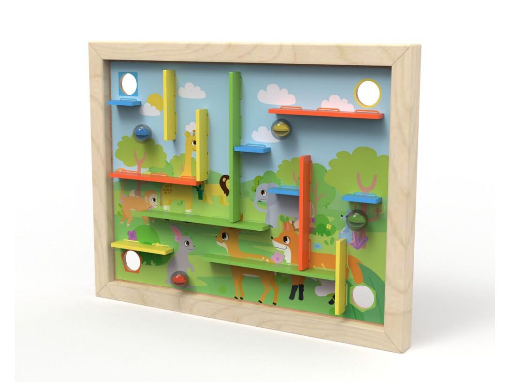 Máte rádi hlavolamy a hádanky? Zaujmou Vás různé bludiště a labyrinty? Pak je pro Vás tento kreativní naklápěcí labyrint tím pravým. Umístěte dřevěné překážky do správných otvorů na desce podle barev, nebo si utvořte dráhu vlastní a hra může začít. Položte kuličky na libovolné místo a nakláněním základní hrací plochy se je snažte umístit do určených otvorů. Nebo můžete dosáhnout stanoveného cíle tím, že budete jednotlivé kuličky cvrnkat do otvorů. Hlavní vlastnosti:•obsahuje 22 dílů•rozvíjí jemnou motoriku a zručnost•zlepšuje obratnost a koncentraci