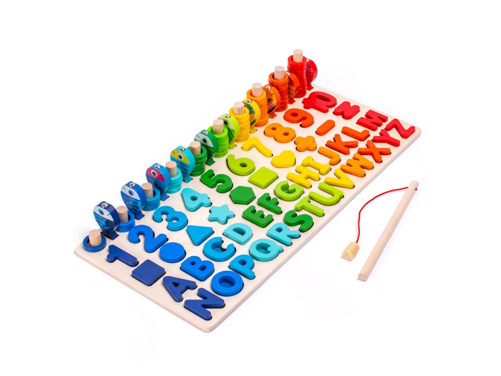 Každý malý šikula si najde to své! Dřevěná multifunkční deska nabízí edukativní hru a pomáhá dětem v koordinaci motoriky, zlepšování koncentrace a rozvoji logického myšlení. Jejím cílem je nejen učení přeměnit na zábavu, ale také vyvinout k učení u nejmenších kladný vztah. Vedle rozpoznávání čísel, tvarů a barev lze v této hře "rybařit" či stohovat kroužky na sebe. Všechny části dřevěné skládačky jsou dimenzovány tak, aby byly ideální pro drobné dětské ruce. Hlavní vlastnosti:•multifunkční edukativní hra•ideální pro trénování motoriky a posílení logického myšlení•podporuje kreativitu•mění učení na zábavu•veselý, pestrý design