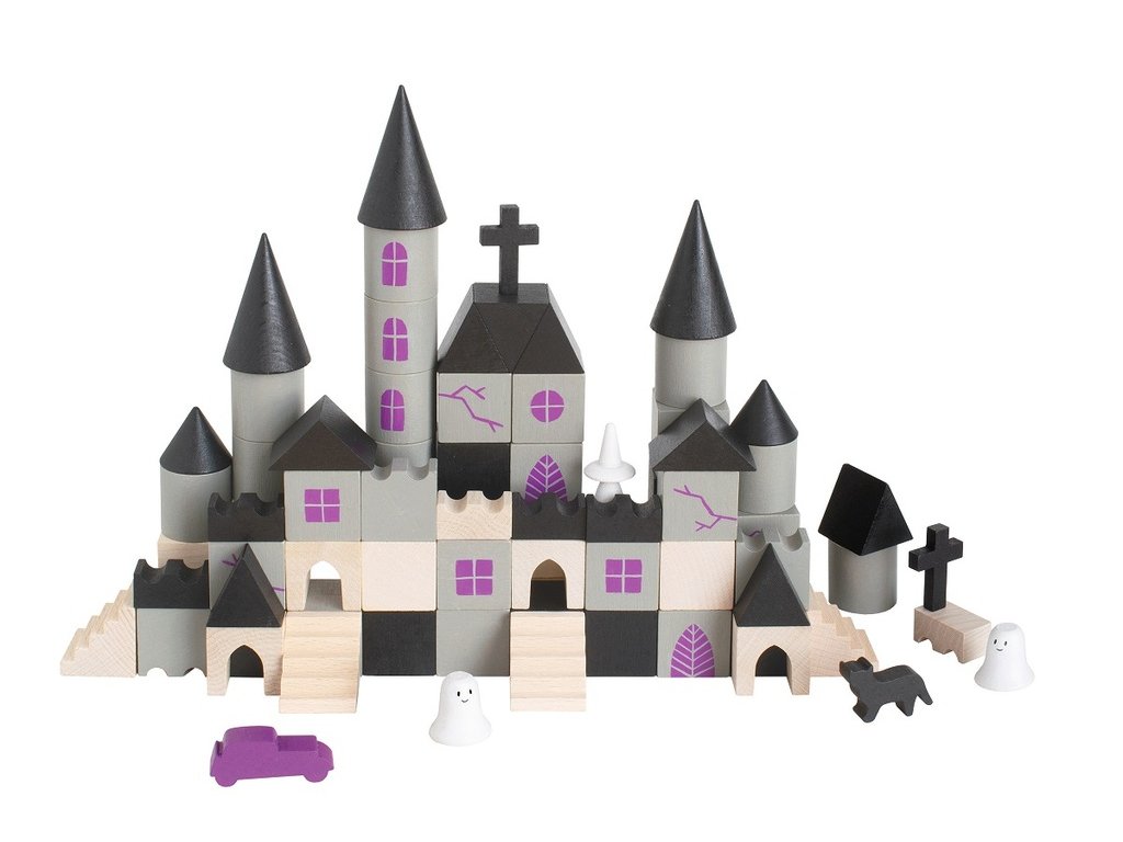 Postav si svůj vlastní strašidelný hrad! Temné věže, duchové, bílá paní, černá kočka – stavebnice rozvíjí fantazii a jemnou motoriku. 97 dílků z kvalitního dřeva v designu strašidelného hradu. Zábava pro malé i velké stavitele. Nevhodné pro děti do 3 let. Obsahuje malé části. Nebezpečí zalknutí. Obsah balení je 97 různě tvarovaných dřevěných dílků a základní velikost kostky je 25 mm.
