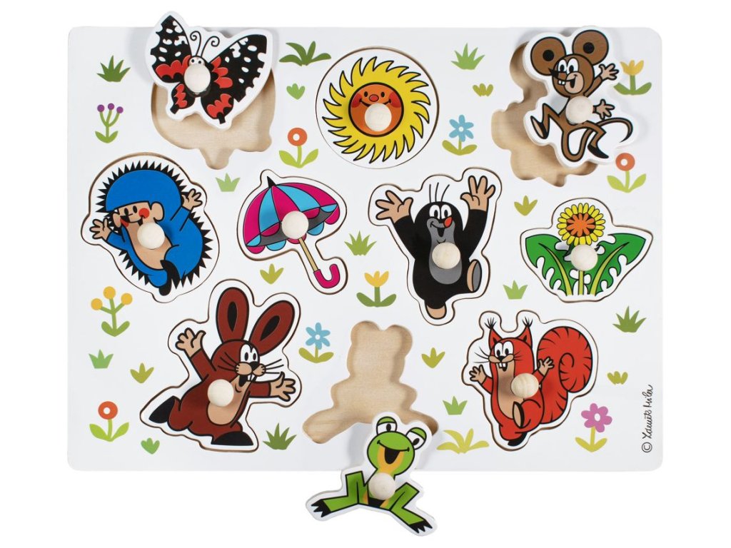 Didaktické vkládací puzzle Krtečka a jeho přátel. Hra učí děti poznávat tvary a pomáhá rozvíjet motoriku rukou. Výrobek splňuje požadavky EU na bezpečnost hraček a je vhodný pro děti od 18 měsíců.