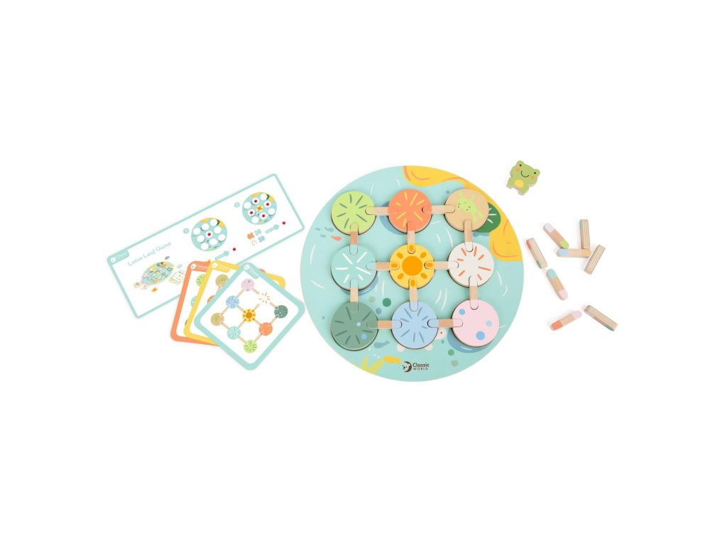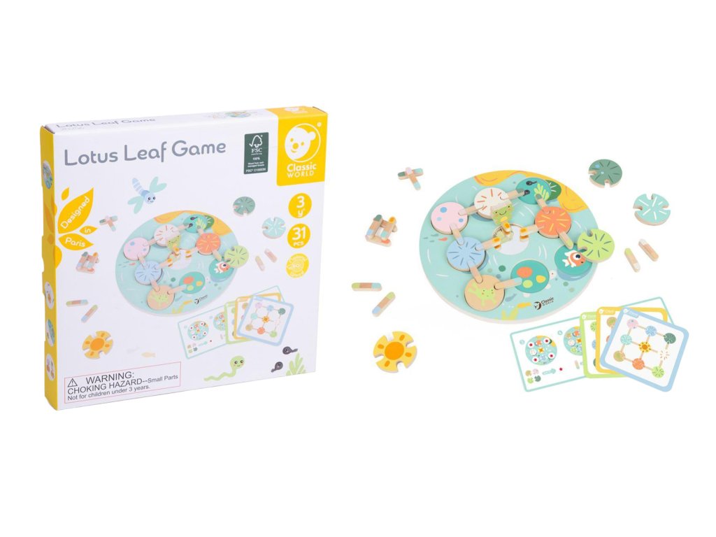 Vyzkoušejte jemnou motoriku, trpělivost a rovnováhu s krásnou dřevěnou balanční hrou Lotusový list! Cílem hry je pokládat jednotlivé dílky zvířátka, lístky nebo jiné tvary na nakloněný lotosový květ tak, aby nespadly. Hra je vhodná jak pro jednotlivce, tak pro více hráčů a rozvíjí koncentraci, koordinaci pohybů i strategické uvažování. Elegantní zpracování a přírodní materiály zaujmou malé i velké hráče. Velikost balení: 28 cm x 28 cm x4 cm Vhodné pro děti od 3 let.