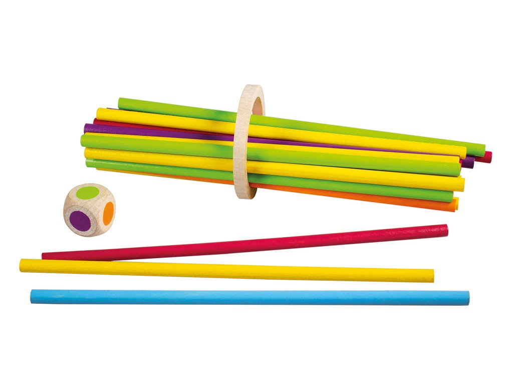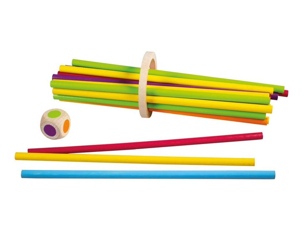 Chcete si zahrát mikádo trochu jinak? Tyčkohraní je hra na procvičení barev a jemné motoriky. Hoďte kostkou a vytáhněte tyčku stejné barvy tak, aby se dřevěné kolečko nedotklo stolu. Obsah balení je 30 ks barevných tyček, 1 hrací kostka, 1 dřevěný kroužek. Varování: nevhodné pro děti do 3 let. Obsahuje malé části. Nebezpečí zalknutí.
