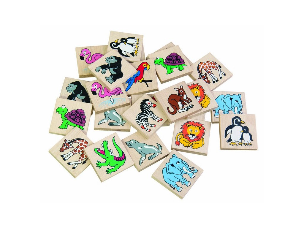 Pexeso z dřevěných kamenů o rozměrech 40x40x6 mm s potiskem zvířátek ze ZOO. Hra pomáhá při procvičení soustředění a paměti. Děti se zábavnou formou naučí poznávat zvířátka. Výrobek splňuje požadavky EU na bezpečnost hraček