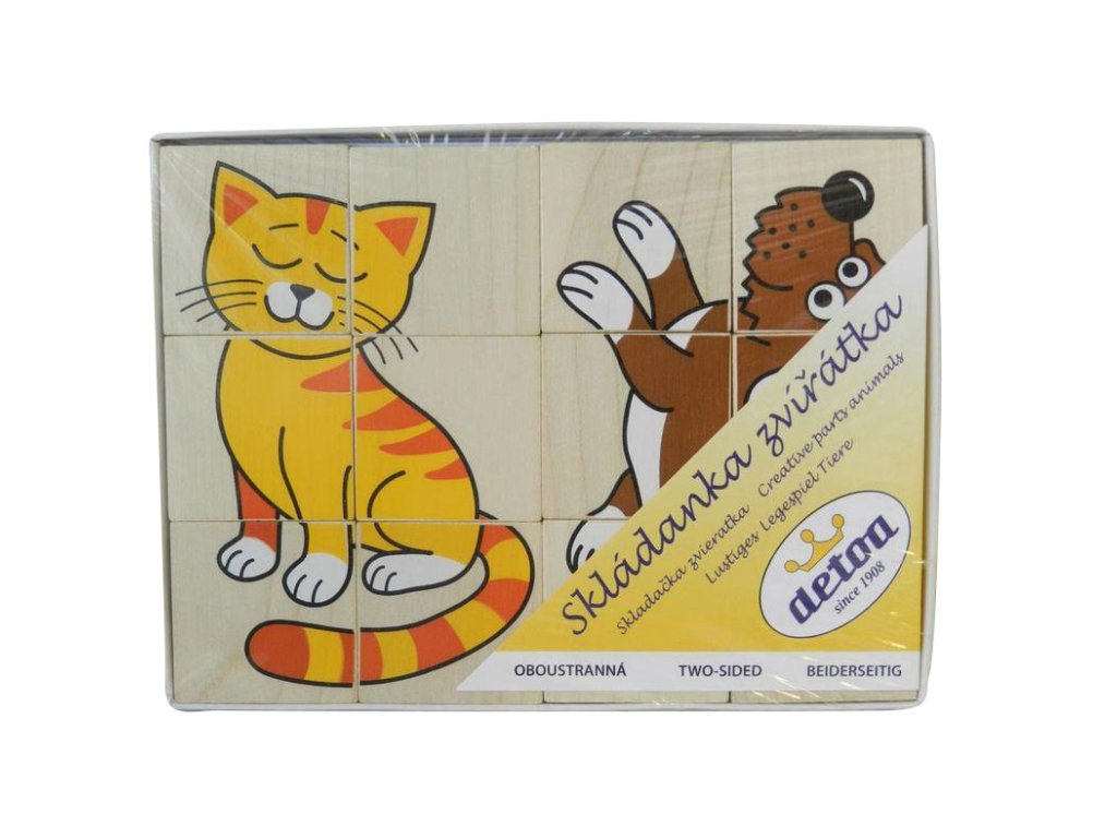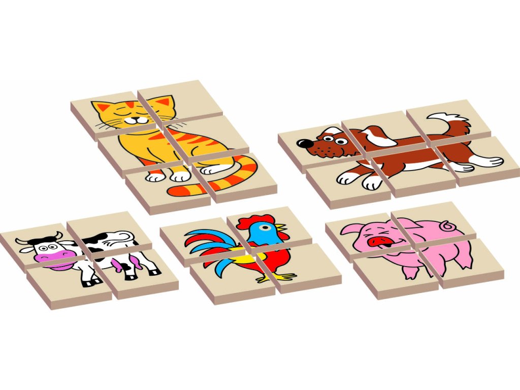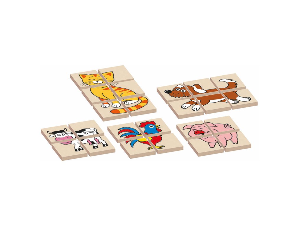 Dřevěná skládanka s motivem zvířátek pro procvičení paměti a soustředění.