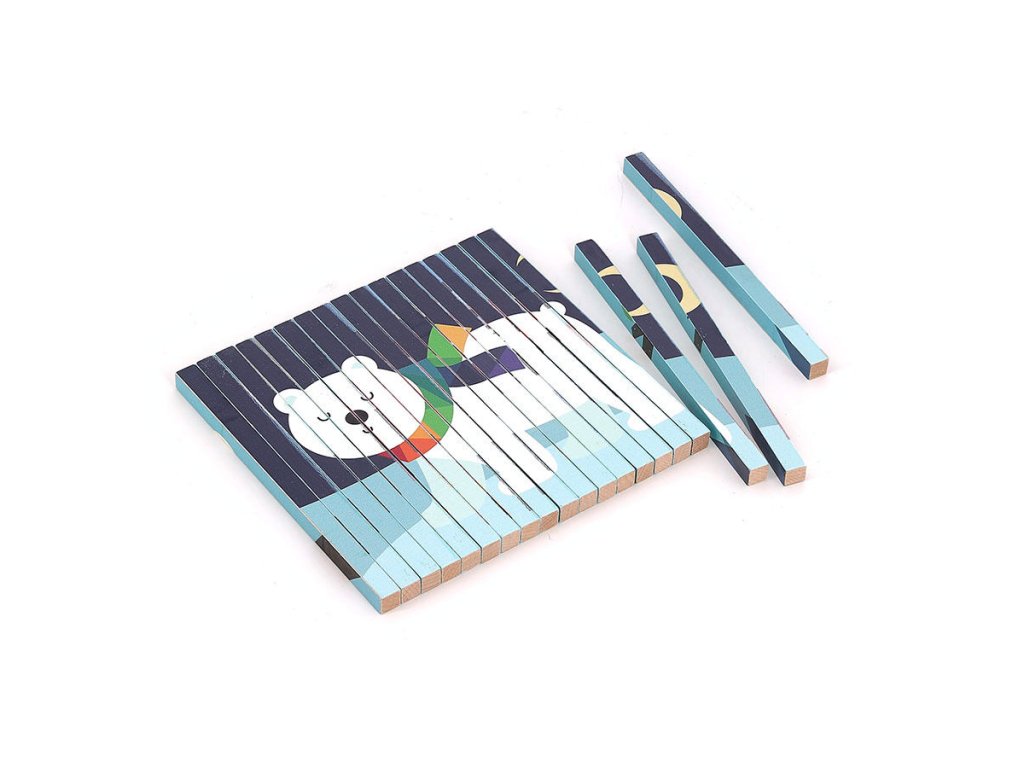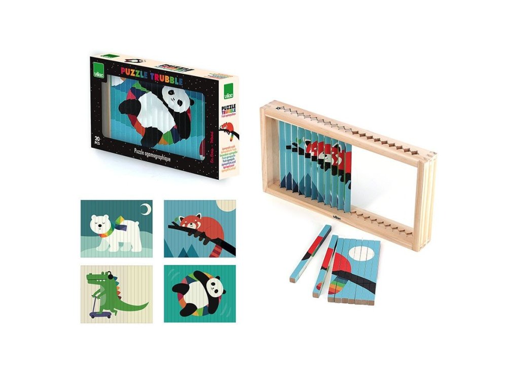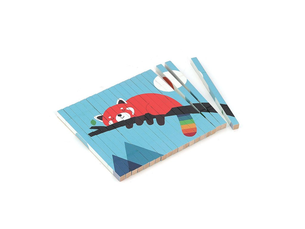 Nakloním se doleva a vidím pandu červenou! Nakloním se doprava a objeví se lední medvěd! Celkem čtyři různé ilustrace se ukrývají v jedné chytré skládačce – panda červená, lední medvěd, krokodýl a panda. Tato 4D skládačka s motivem zvířátek, které ilustroval známý umělec Andy Westface, nabízí dětem od 5 let zcela jedinečný herní zážitek. Díky dřevěným tyčinkám, které jsou potištěny ze čtyř stran, se podle úhlu pohledu objevují různé obrázky. Tento chytrý a nápaditý design nejen zaujme, ale také pomáhá dítěti rozvíjet logické myšlení a jemnou motoriku. Součástí je i vizuální značka, která dětem pomáhá skládačku správně složit. Skvělá volba pro zvídavé děti, které se rády učí hrou! Zasouváním tyčinek do rámečku si děti zlepšují koordinaci ruka-oko, přesnost pohybu i sílu v prstech. Tyto dovednosti jsou důležité nejen pro hry, ale i pro každodenní činnosti, jako je psaní nebo kreslení. Každý krok při skládání vyžaduje pozornost a pečlivost, takže se dítě učí trpělivosti a soustředění. Díky poetickému a barevnému stylu ilustrací Andyho Westface děti objevují nejen zvířátka, ale i nové příběhy. Mohou si samy vymýšlet scénky a povídky podle toho, co vidí. Hra tak rozvíjí nejen logické myšlení, ale i jazyk, slovní zásobu a představivost. Skládačka je proto skvělou kombinací vzdělávání a zábavy a je ideální pro smysluplné trávení času s rodiči i kamarády. Obsah balení•1 dřevěný stojánek•20 dřevěných tyčinek potištěných z každé ze 4 stran Hlavní vlastnosti•originální design ve 4 rozmě
