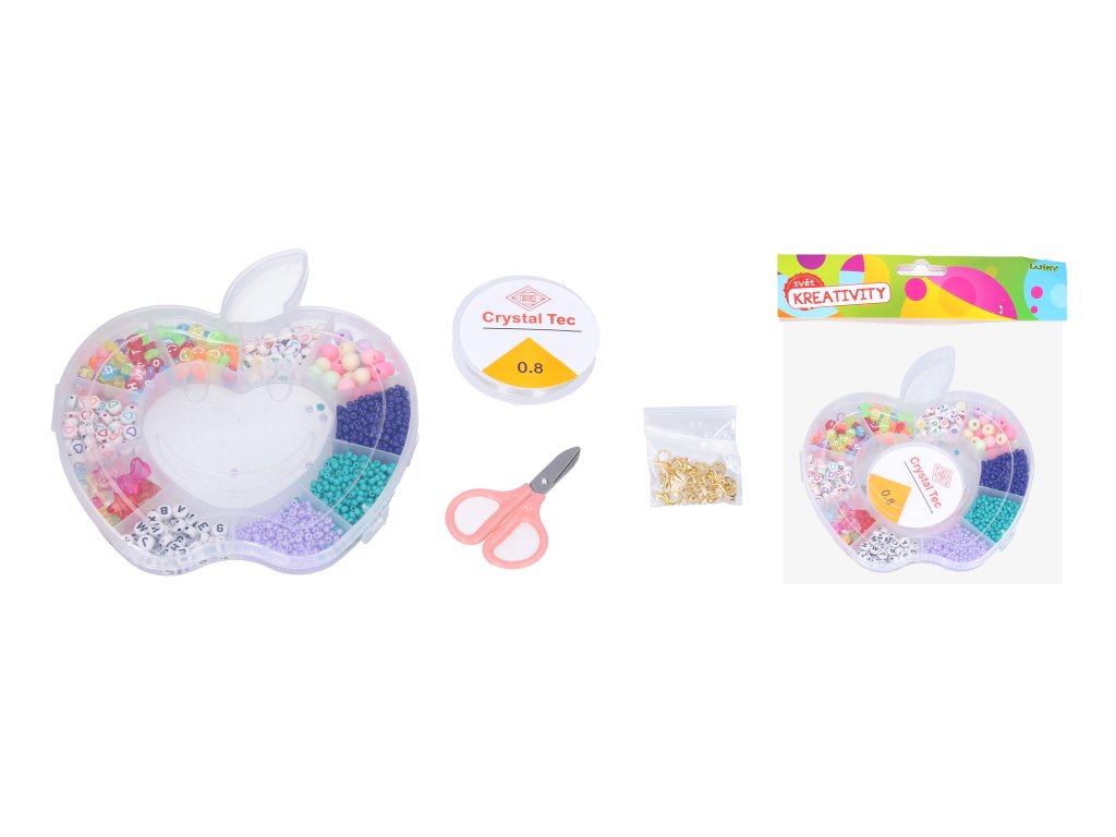 Korálky set + provázek + nůžky + zapínání - Jablko