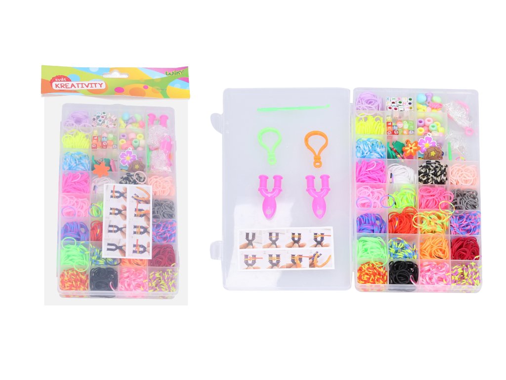 Balení obsahuje: korálky, zaplétací gumičky, příslušenství, ozdoby a návod.