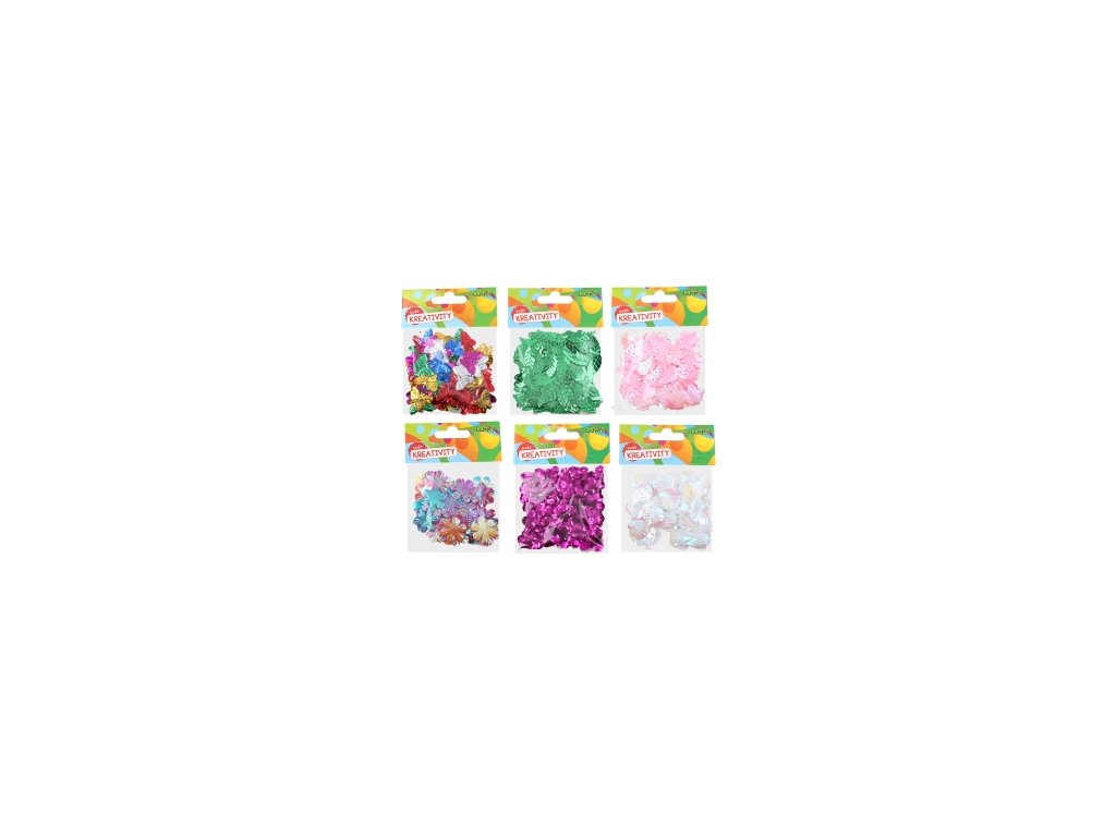 Obsahuje 10 g dekorací. Motivy jsou lístky, kolečka, kytičky, mix, mušličky, motýlci.