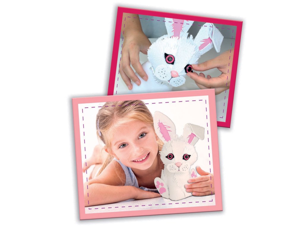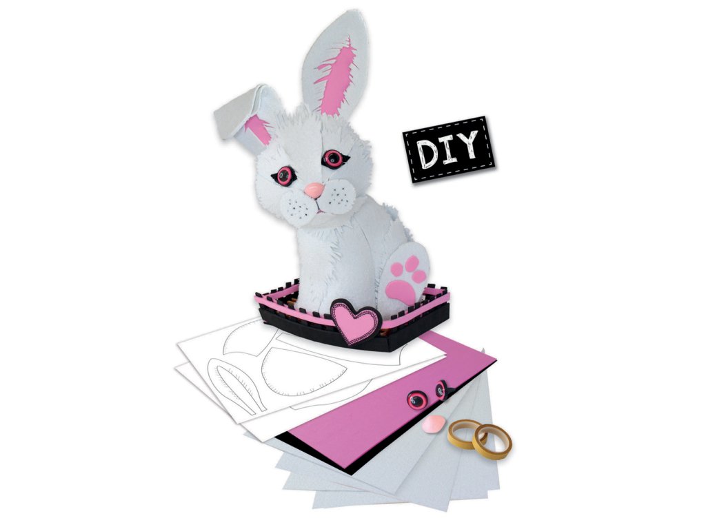 Vytvořte si svého mazlíčka králíčka.Výroba je velmi snadná a bezpečná a vše co potřebujete najdete v krabici. Základ tvoří plastové tělo, které jednoduše spojíte. Potom už kompletujete vše dle postupu v návodu. Sada obsahuje7 listů materiálu EVA (ethylen vinyl acetát), oboustrannou lepící pásku, vzory, plastový čumáček a oči a návod. Vhodné pro: 6+. Video: https://www.youtube.com/watch?v=eO7Supjia6o