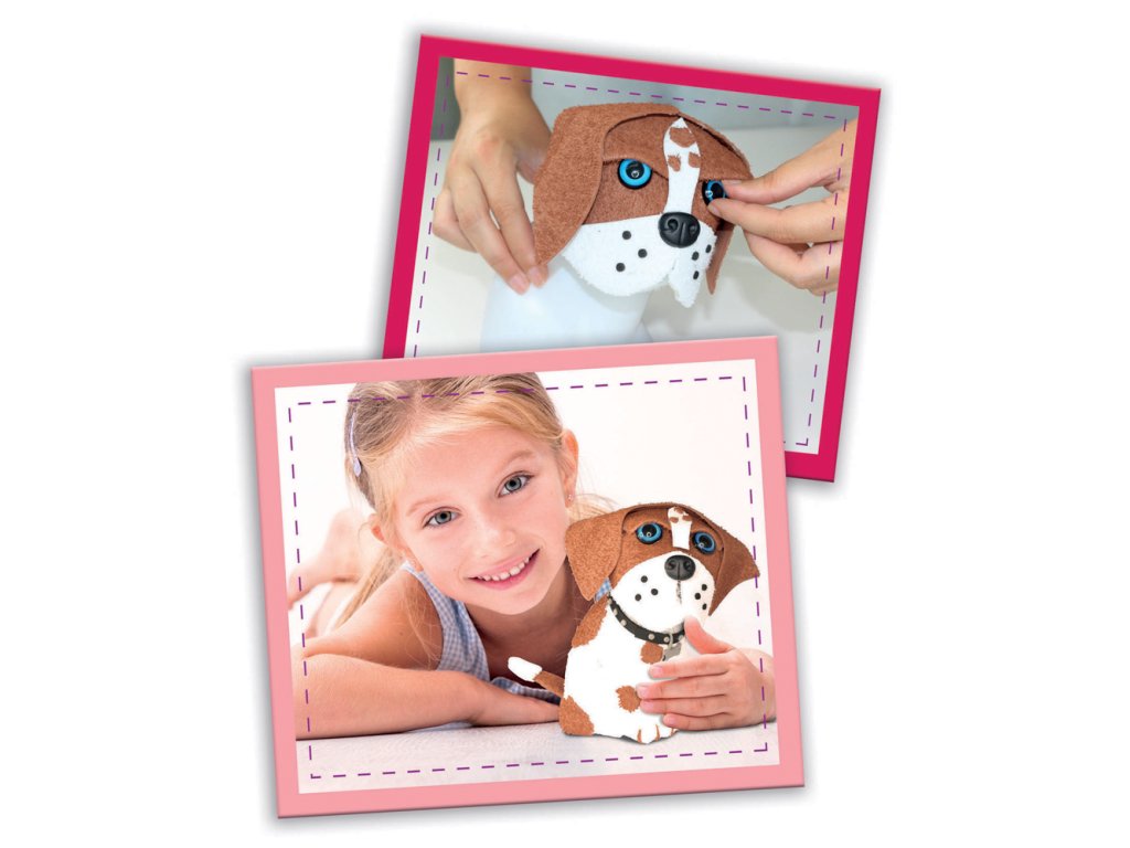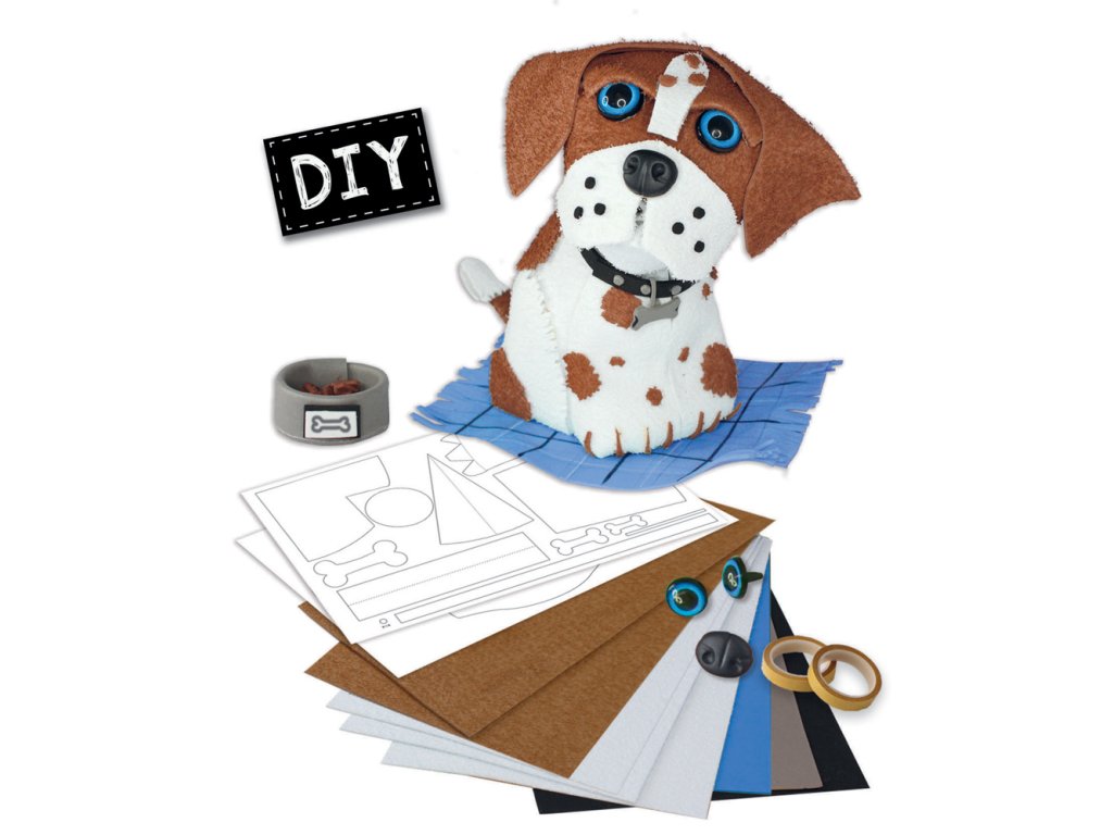 Vytvořte si svého mazlíčka štěňátko s jeho příslušenstvím.Výroba je velmi snadná a bezpečná a vše co potřebujete najdete v krabici. Základ tvoří plastové tělo, které jednoduše spojíte. Potom už kompletujete vše dle postupu v návodu. Sada obsahuje7 listů materiálu EVA (ethylen vinyl acetát), oboustrannou lepící pásku, vzory, plastový čumáček a oči a návod. Vhodné pro: 6+. Video: https://www.youtube.com/watch?v=azsFHHru1no