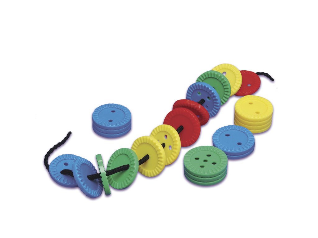 - 40 knoflíků (ve 4 různých barvách s 1, 2, 3, 4 nebo 5 dírkami)