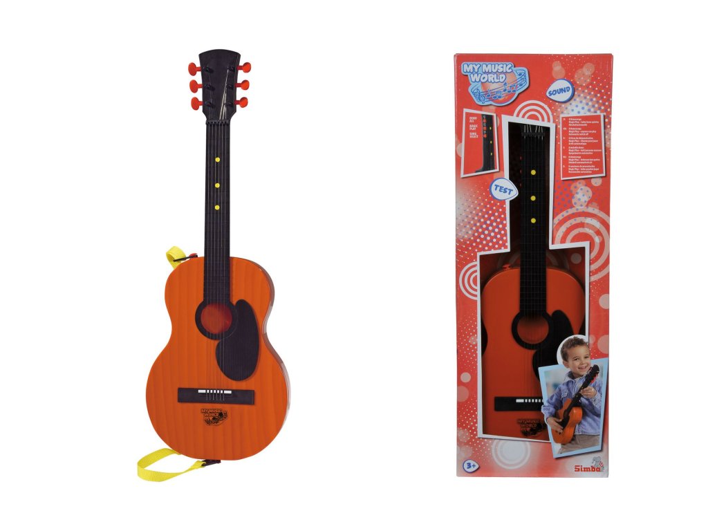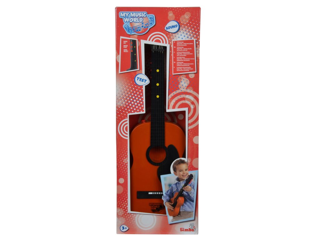 Country kytara má 6 kovových strun, 8 demo melodií. Délka 54 cm. Baterie součástí.