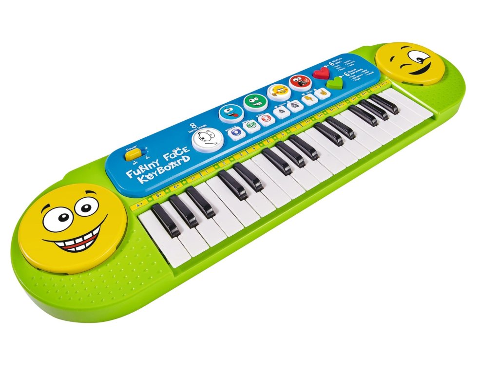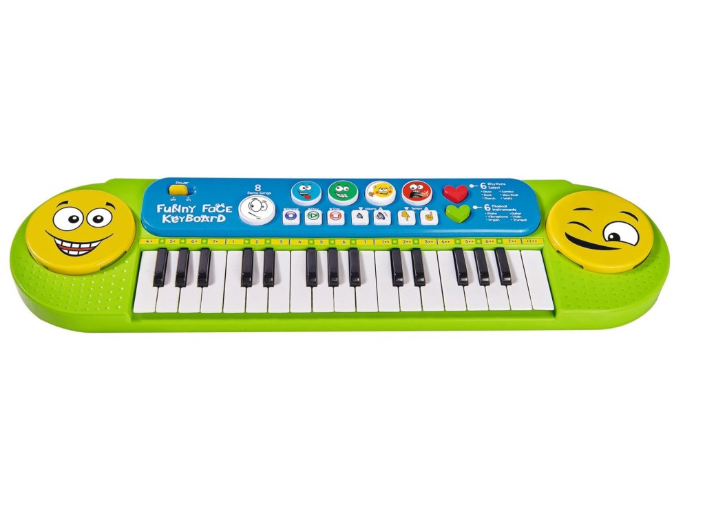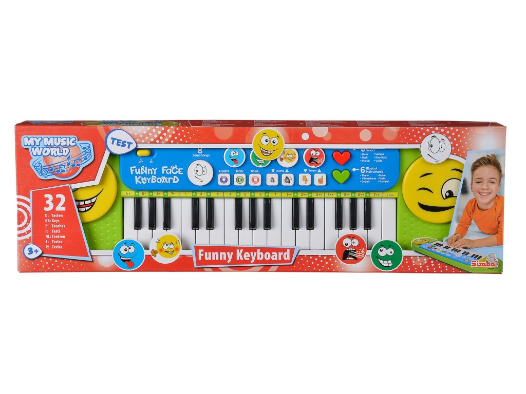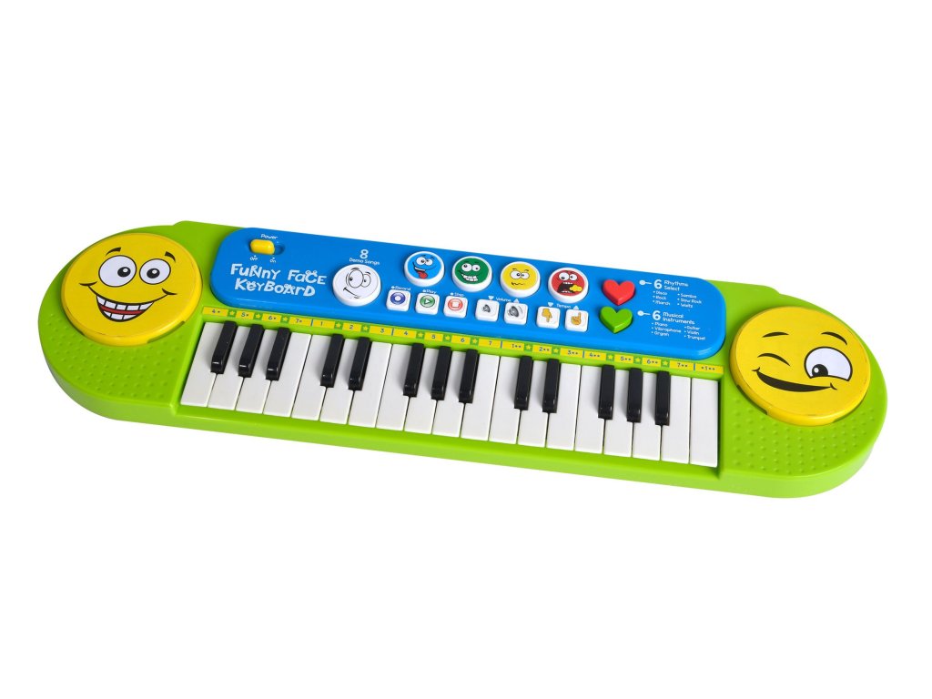 Dětské, funny klávesy mají 32 kláves, 8 demo melodií, 6 rytmů a 4 legrační zvuky. Velikost 51 x 14 cm.