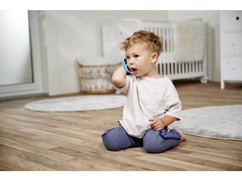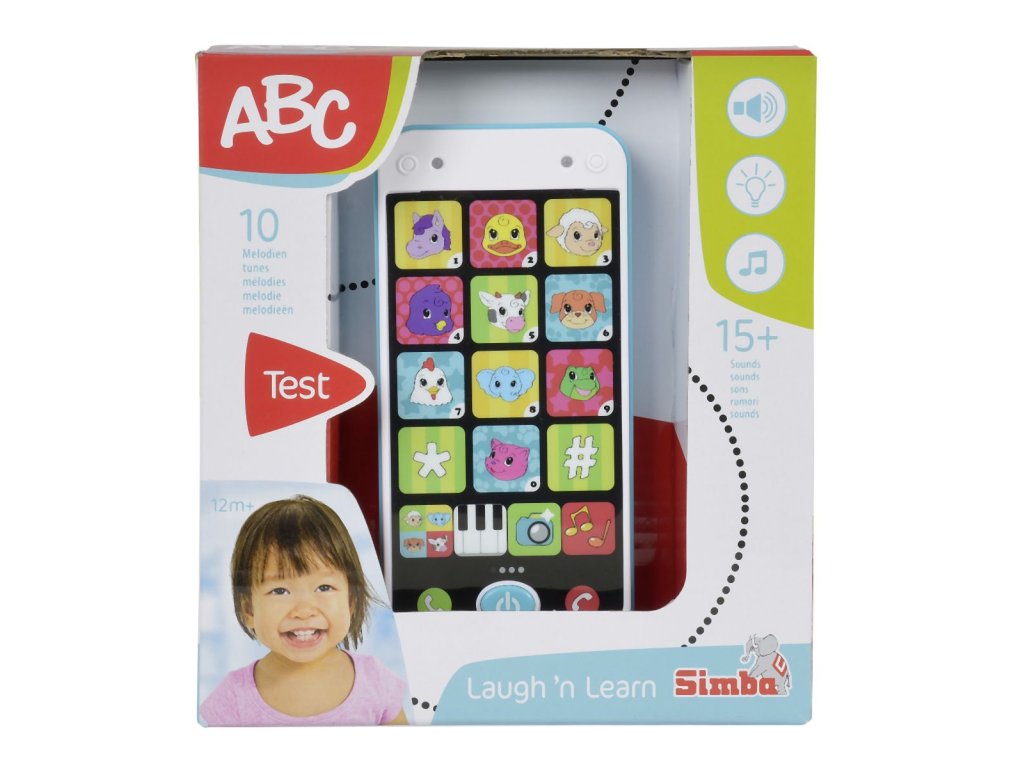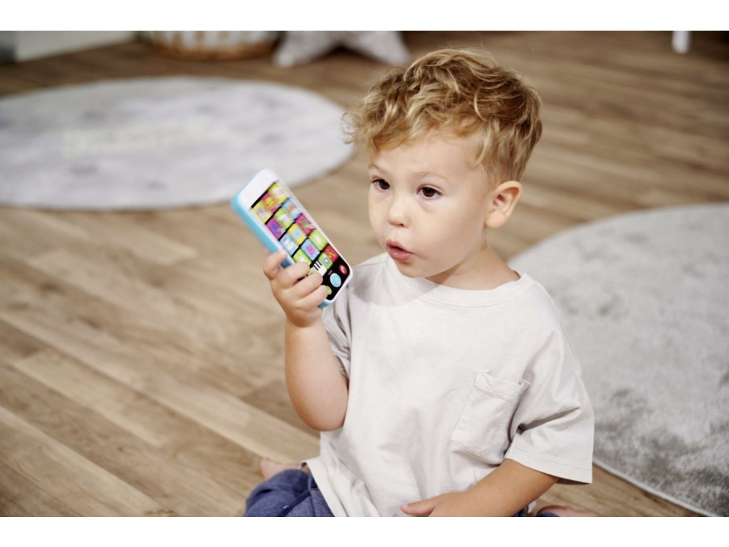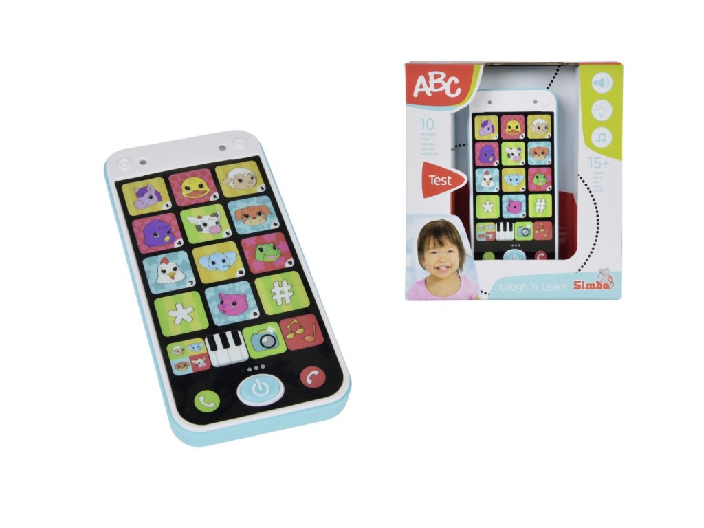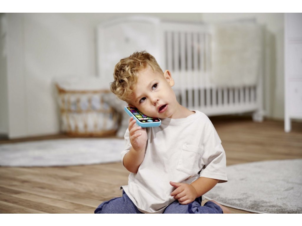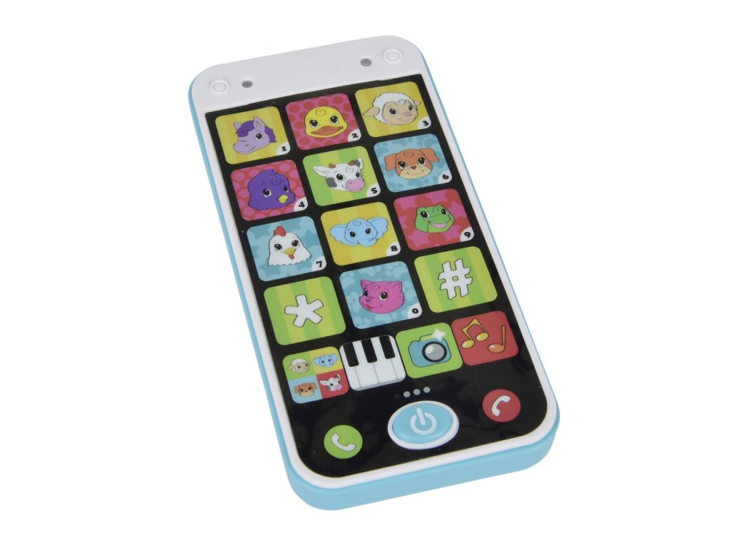 Mobilní telefon pro nejmenší se světelným a zvukovým efektem - melodie, hlasy zvířátek a další zvuky. Výška telefonu 13,5 cm.