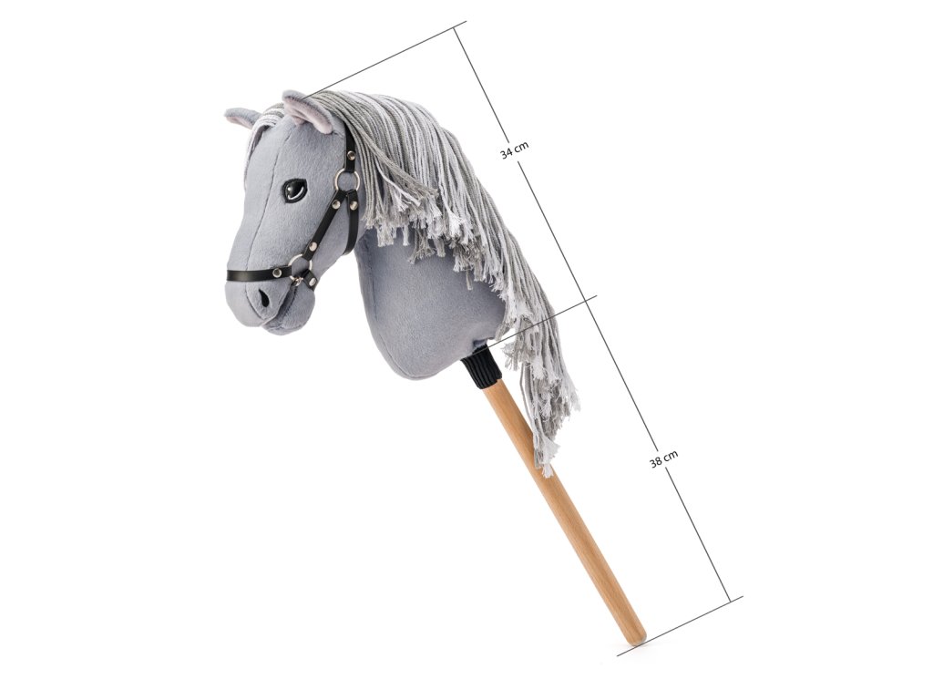 Hobby horsing je ideální volbou pro všechny milovníky koní. Uspořádej s kamarády závod v této speciální disciplíně! Tento majestátní šedý krasavec s provázkovou hřívou je dodáván i s odnímatelnou uzdou. Součástí výrobku je dřevěná tyč. Hlava je vyrobena z pevného polystyrénového materiálu obaleného jemným kvalitním plyšem.| Věk: 3+| Délka hlavy s tyčí: 73 cm
