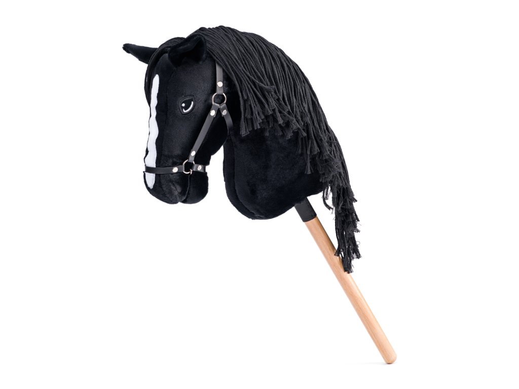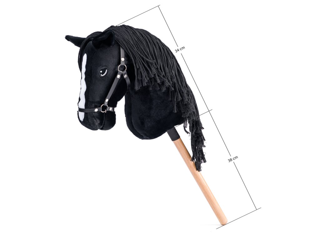 Hobby horse Cortez, černý kůň na tyči, provázková hříva
